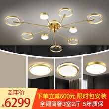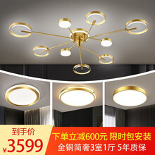 创适简奢纯铜艺术灯【套餐包安装】全铜吊灯轻奢客厅灯现代简约灯具套餐三室两厅卧室铜灯大气创意设计灯饰 全铜套餐6:三室两厅三色无频闪【到...选简奢铜灯来创适【享6期免息、限时包安装】抢999立减100元优惠券与走廊灯【满999元减300元、满1999元减400元、满2999元减500元】