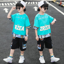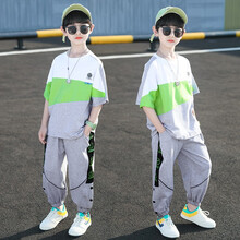 哈维熊 男童套装篮球服夏装2021新款儿童套装中大童小男孩衣服时尚百搭休闲运动短袖裤子两件套潮装 MXT-LST笑脸套装#墨绿 160火爆促销,满167元减20元,满249元减30元!7天无理由退换!