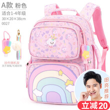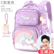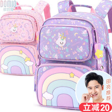 多妙屋小学生书包女童一三四年级女孩彩虹减负护脊轻便儿童双肩包 B款-紫色 0044轻便|多层大容量