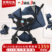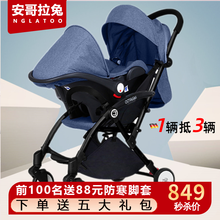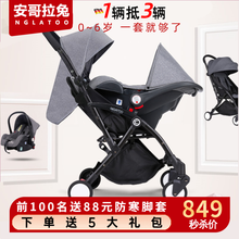 安哥拉兔(NGLATOO)婴儿推车提篮三合一新生儿可坐躺轻便携便携式能车载安全座椅可折叠带提篮组合 自动款7代-黑架灰【8代自动折叠】【提篮+推车,呵护脊柱;前100名下单送88元脚套,下单再送百元出行礼包】