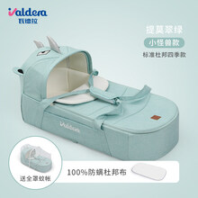 valdera 便携式外出婴儿床新生儿车载床中床月子安全床睡篮 【现货标准四季款】达芙妮蓝.小萌狗+全罩蚊帐升级杜邦布0-12月宝宝