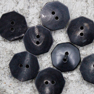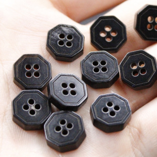 现货供应平面四眼八边形真牛角扣子棉麻衬衫开衫多边形黑牛角纽扣