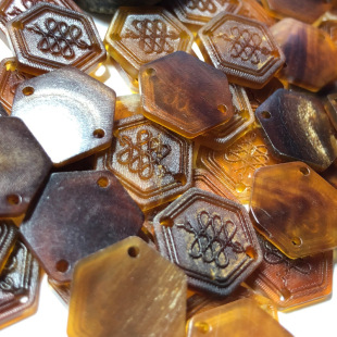 咖啡色牛角标牌六边形棕色牛角标 礼服成衣配饰标志定制