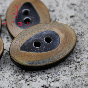 椭圆形两眼牛角扣复古烧面真牛角纽扣个性天然牛角钮扣DIY扣子