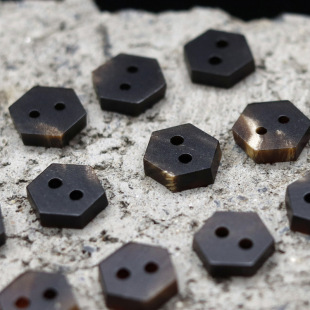 天然深咖色六边形牛角纽扣个性简约棉麻格子衬衣开衫长衫纽扣