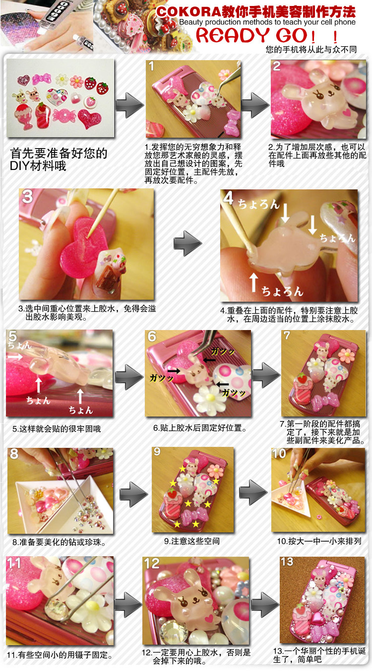 【适用范围】可贴在任意地方,手机、镜子、服装、帽子、包包...等任何物品,和贴钻、软陶花、琉璃花一样可以一起任意搭配着用,想贴在哪就贴哪。发挥您的想象,DIY出独一无二的时尚单品。