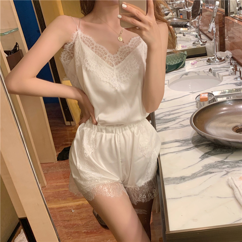 实拍实价 时尚蕾丝花边吊带上衣 蕾丝花边短裤家居服睡衣两件套 | |