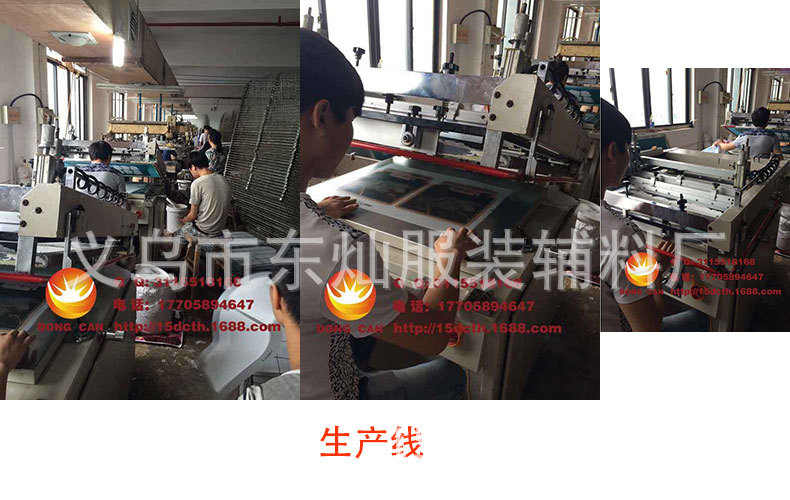 烫画厂常用的烫画底材一般是7.5C(丝米,1cmm=0.01mm)厚的PET胶片,也可以按客户的要求用200克重的铜板纸做底材,在这些底材上面先印好离形,这种离形分为热撕平光效果;冷撕哑面效果;冷撕亮光效果。一般我们选择第一种热撕平光效果,这种离形是最为成熟的工艺,并且易上彩色,撕纸也容易。第二种冷撕哑面效果,主要特点是撕纸后,表面比热撕平光要平整,一般适用于皮革以及表面粗纹的布料上,此种胶片缺点是不易上彩色,也就是印不实;最后一种冷撕亮面效果,主要特点是表面平整且表面有亮光的效果,主要适用于没有弹力的布料,其缺点是表面上色不均匀,造成生产过程中浪费太大,一般不建议客户选择此效果的胶片做大货