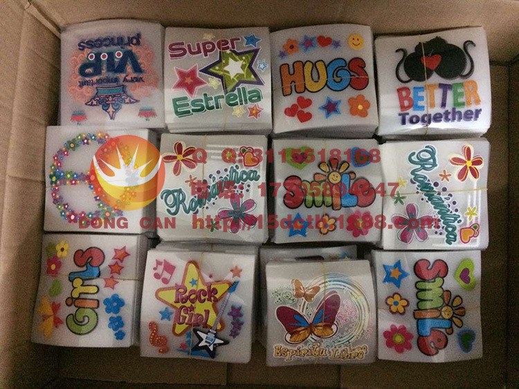烫画每100张为一包,500张为一箱,纸箱包装。500张25公斤左右,以此类推!运费
