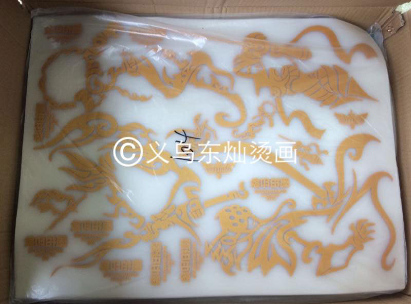 手感舒适烫画胶片有哑光、亮光、平光、等效果不同效果做出来手感比较光滑,柔软