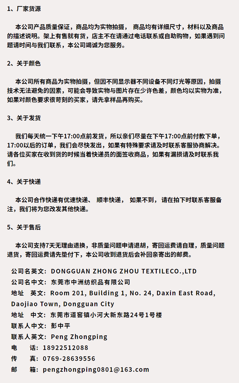 | 因产品多种规格,页面价格不精准,具体价格咨询客服。 注∶开票另加税点,详细请咨询客服。 关于新广告法声明 9月1日新 广告法规定所有页面不得出现夸张化用词和功能性用词本店支持新 广告法,为了不影响消费者正常购买,页面明显区域本店已在排查修改,并在此郑重声明;本店所有页面上的夸张化用词和功能性用词在此声明后全部失效,不作为赔付理由。不明显区域我们会逐步排查与完善修改,本店不接受并且也不妥协以任何形式的违禁词商品赔付。希望各位消费者理解,也请职业打假人士高抬贵手。 注∶根据 | ||