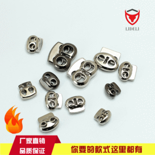 厂家直销现货金属吊钟止绳扣 圆柱形双孔松紧调节锌合金弹簧卡扣