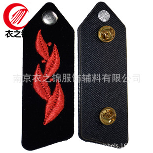 | 厂家订制定做表演活动服立体红唇电脑绣花正面黑色斜纹布搭扣肩章 | |