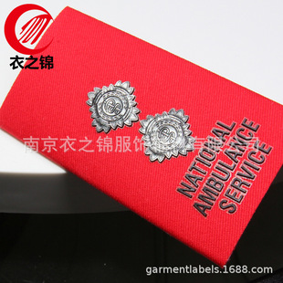 | 厂家定制医院执勤工作制服红色平头肩章用印压硅胶logo斜纹布肩章 | |