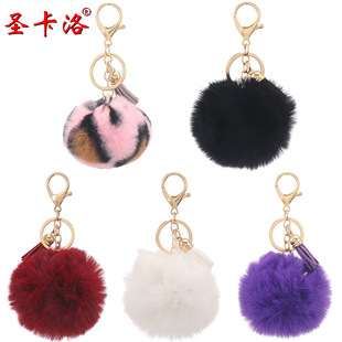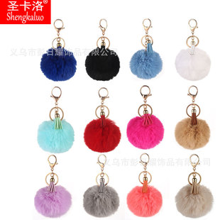 | 厂家现货仿獭兔毛球钥匙扣12色套装流苏挂件 汽车女包包毛绒挂饰