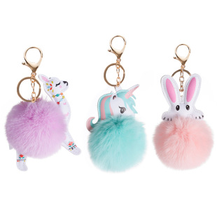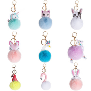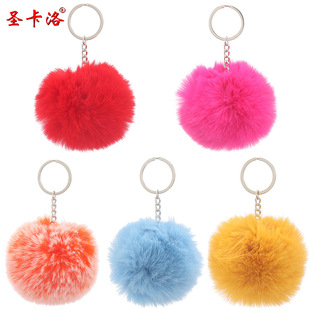 | 2022跨境混色毛球毛绒钥匙扣挂件时尚短毛绒包包挂件汽车配件