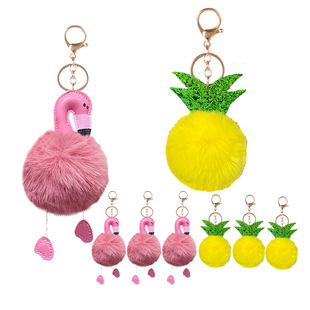 | 夏季ins潮流热带雨林风格火烈鸟菠萝套装箱包挂件钥匙链艺术礼品