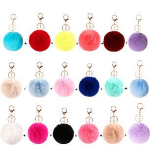 | 22色钥匙圈组合套装毛球钥匙扣创意毛绒包包挂件仿獭兔毛球配饰