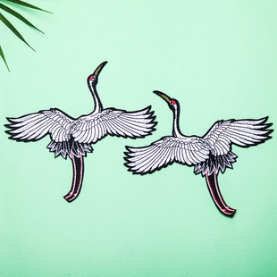 义乌工厂批发仙鹤刺绣diy布贴 旗袍服装辅料刺绣贴动物绣花布贴 | |