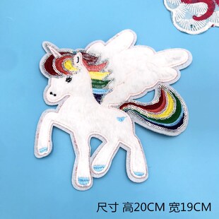 新款大号动物独角兽刺绣布贴 羽绒服衣服毛绒贴布绣贴布标 | |