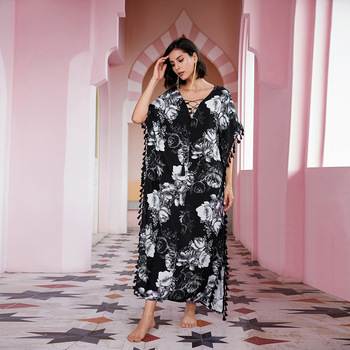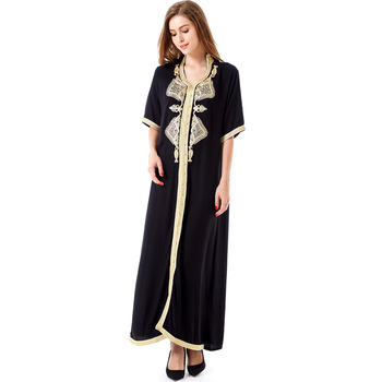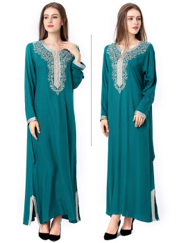 跨境中东爆款圆领长袖礼拜斋月长裙穆斯林绣花系带礼服连衣裙女