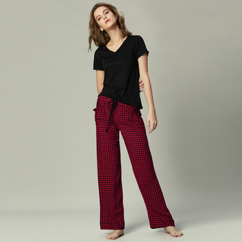 秋冬法兰绒圣诞格子裤衬衫面料 21s涤棉色织平纹磨毛格子布面料