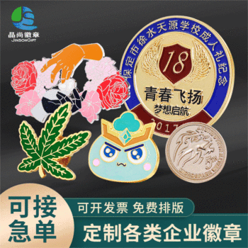 主要产品系列:徽章、钥匙扣、奖牌、纪念币、蜡烛盖、手机链、校徽、班徽、挂包器、行李牌、奖章、纪念章、钱夹、书签、冰箱贴、商标牌、