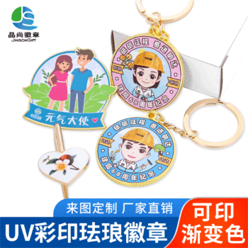 加工特长:冲压,压铸,烤漆,珐琅,玻璃漆,腐蚀,印刷,滴胶等。