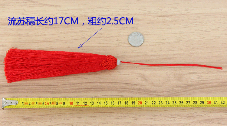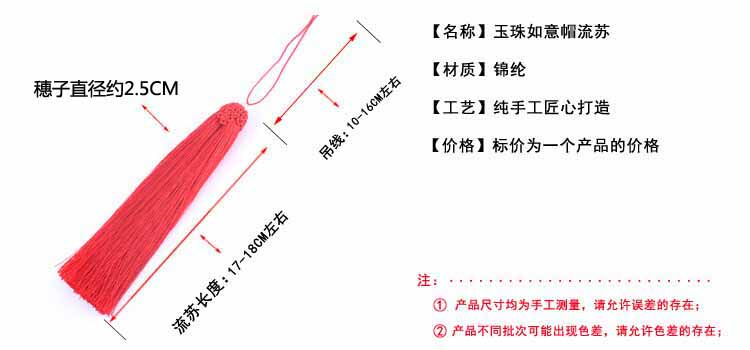 规 格:流苏总长约18CM,流苏粗约2CM;上面双线长约13CM,单根挂线粗约1毫米(全手工编制,大小略有误差)