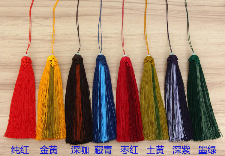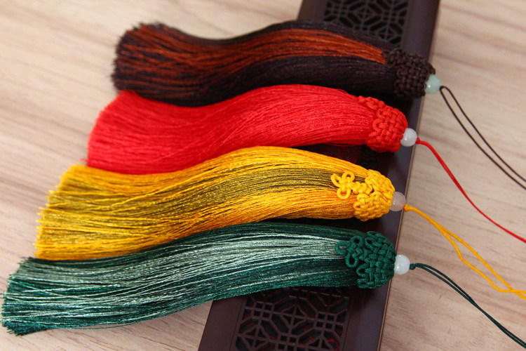 作 用:该流苏采用高档锦纶线材,色泽纯正,手感顺滑,饱满厚实,垂直感很好;可用在各类玉石、琉璃、陶瓷等高档工艺品挂件、汽车挂件、古典乐器、古装戏服等场合!