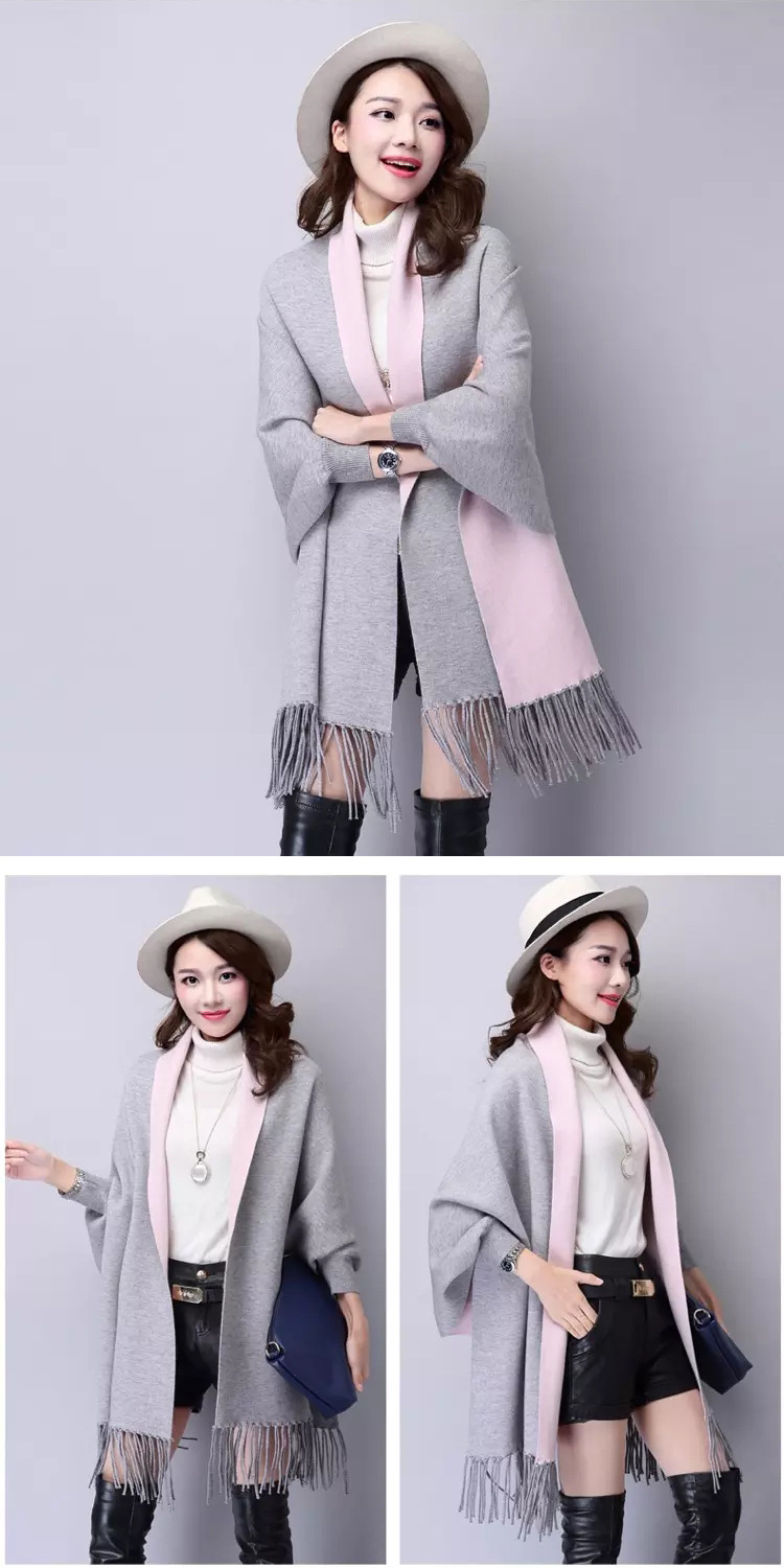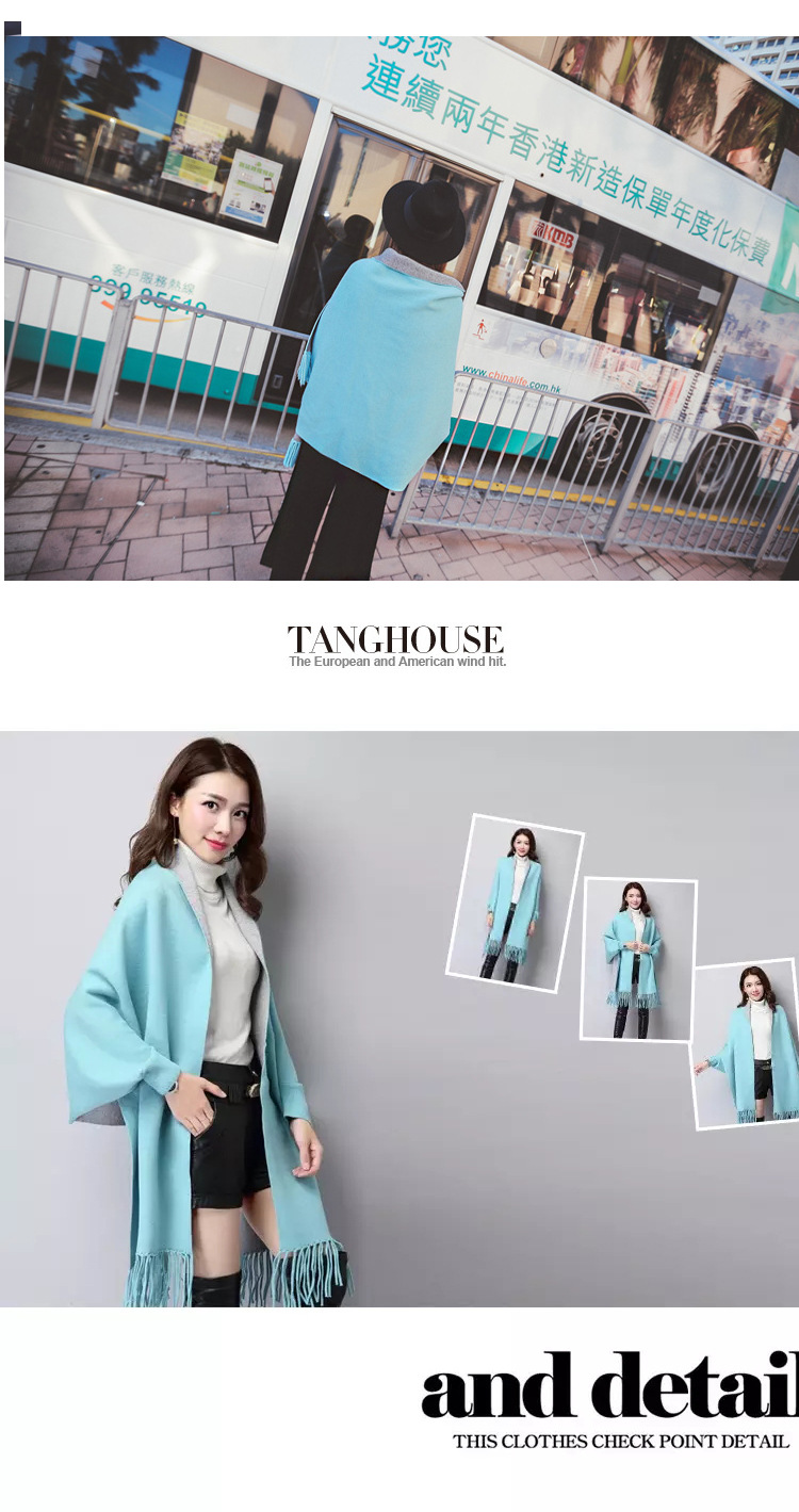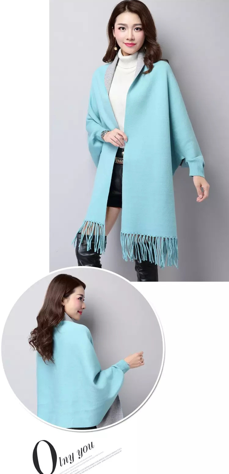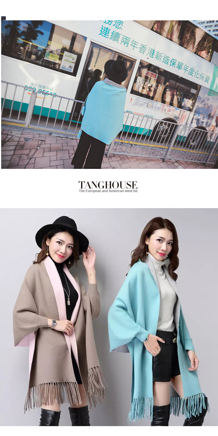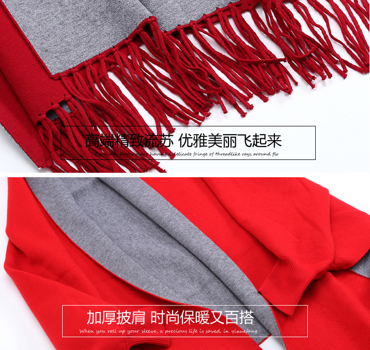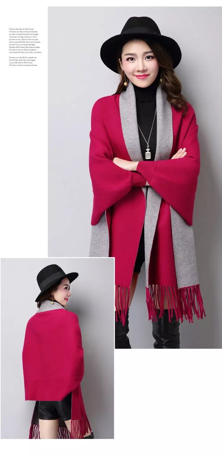 厂家直销带袖披风斗篷披肩围巾两用加厚秋冬季女双面纯色外套