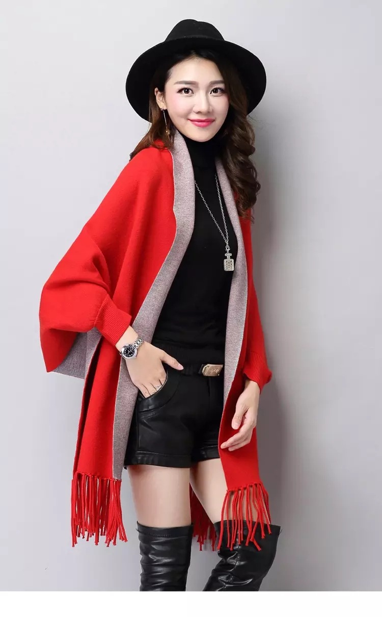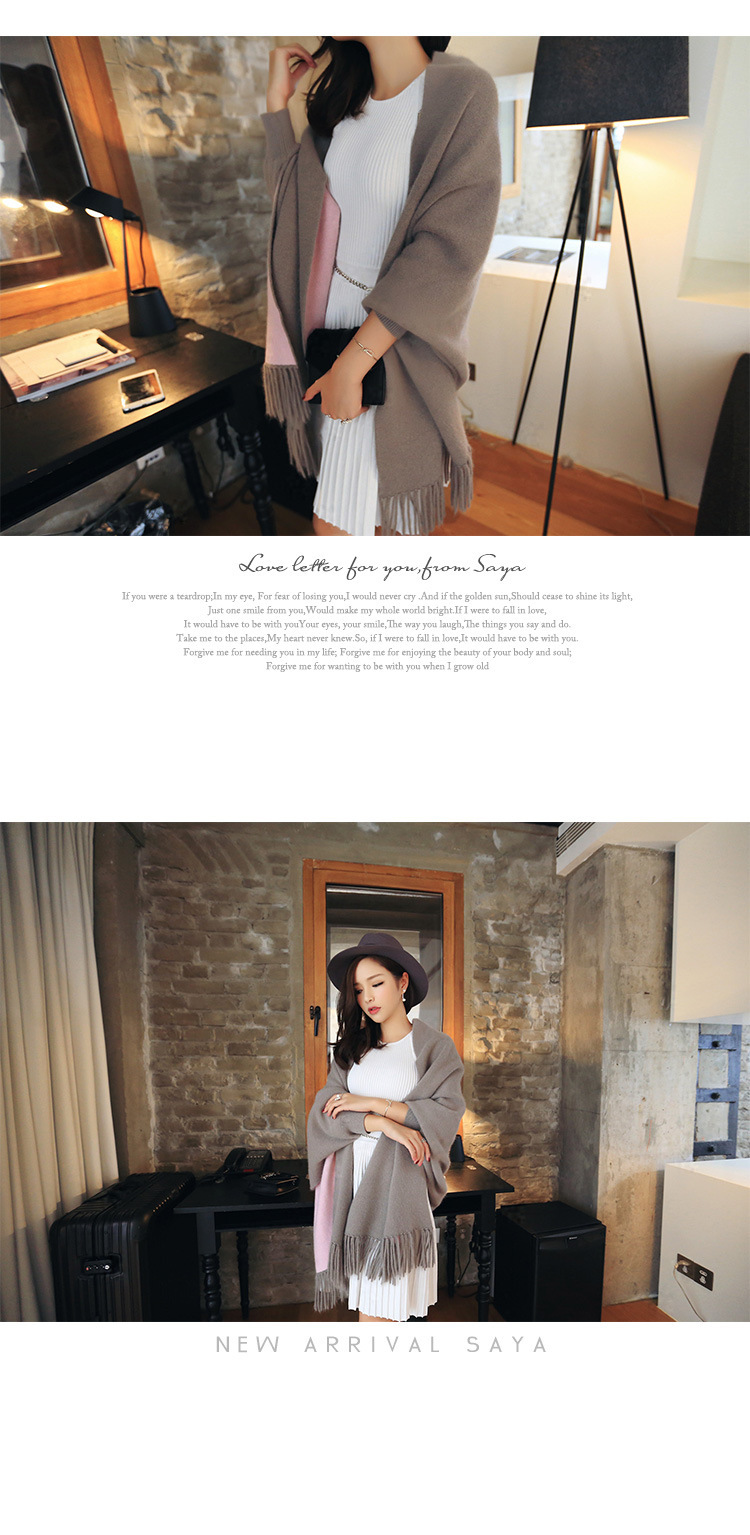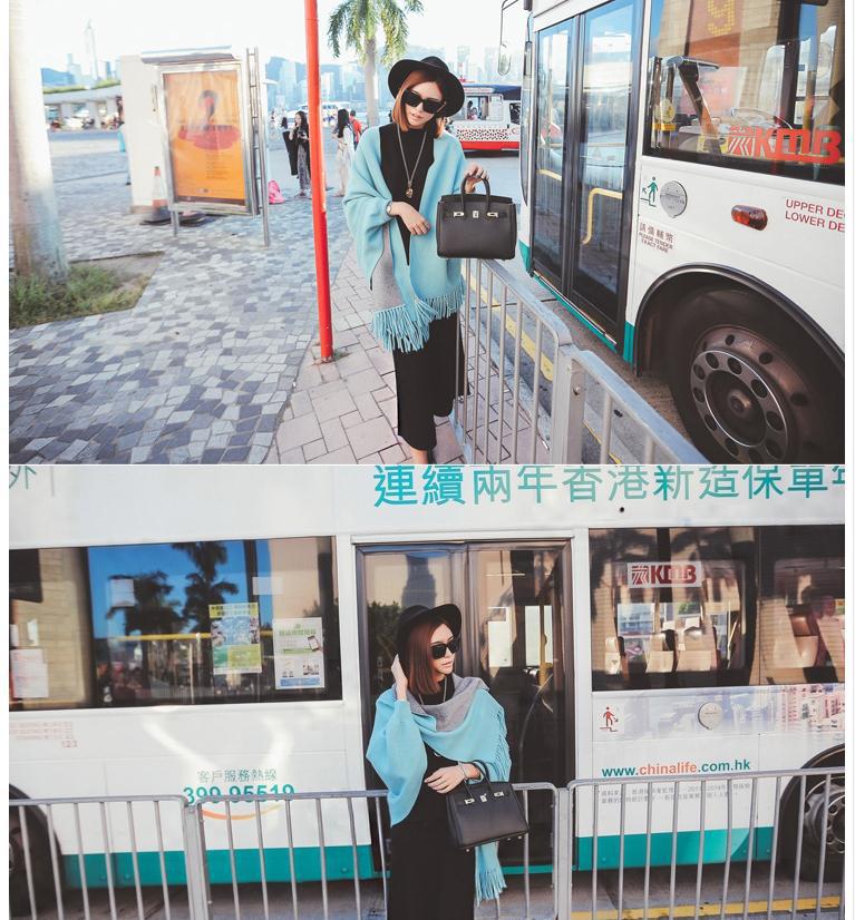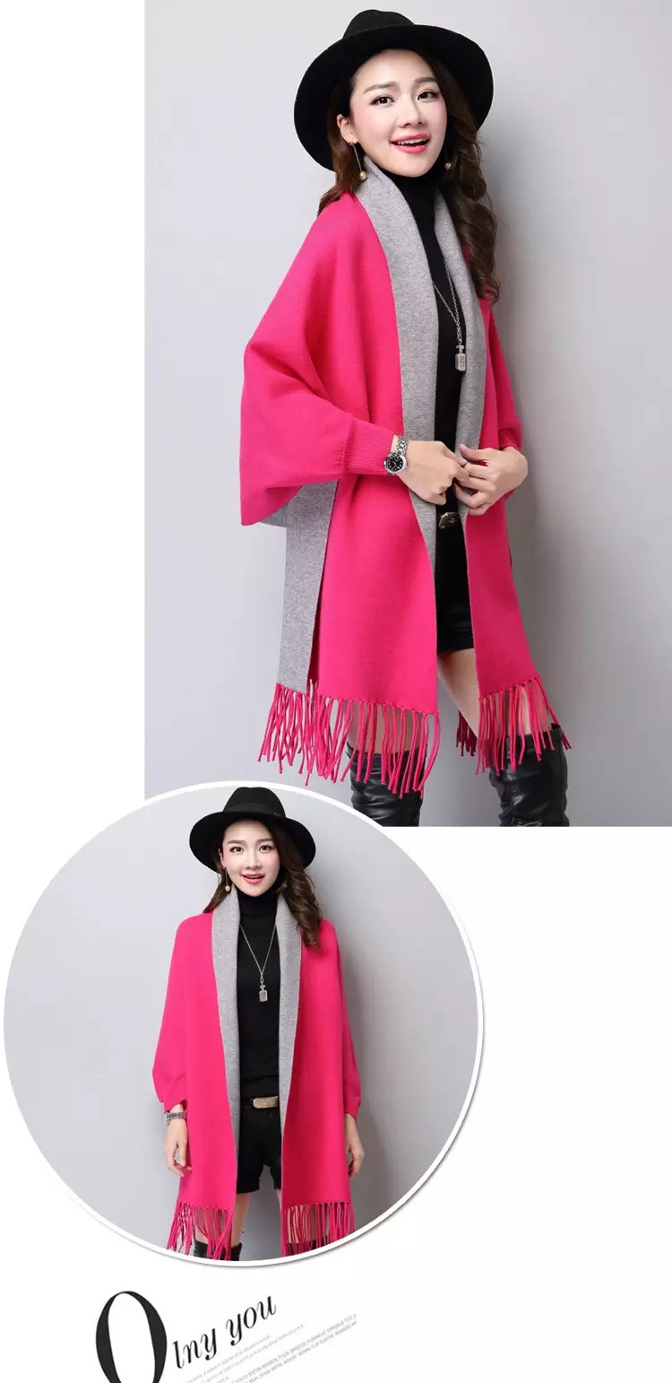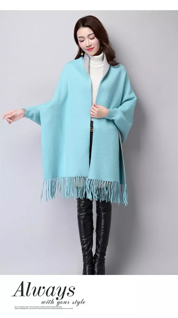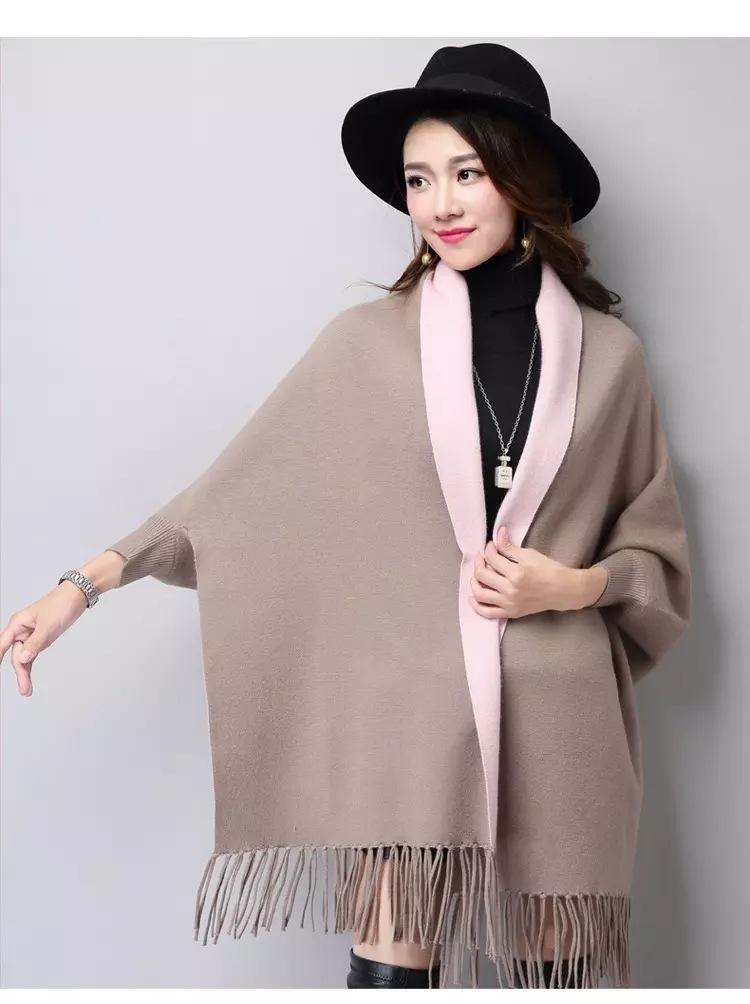厂家直销带袖披风斗篷披肩围巾两用加厚秋冬季女双面纯色外套