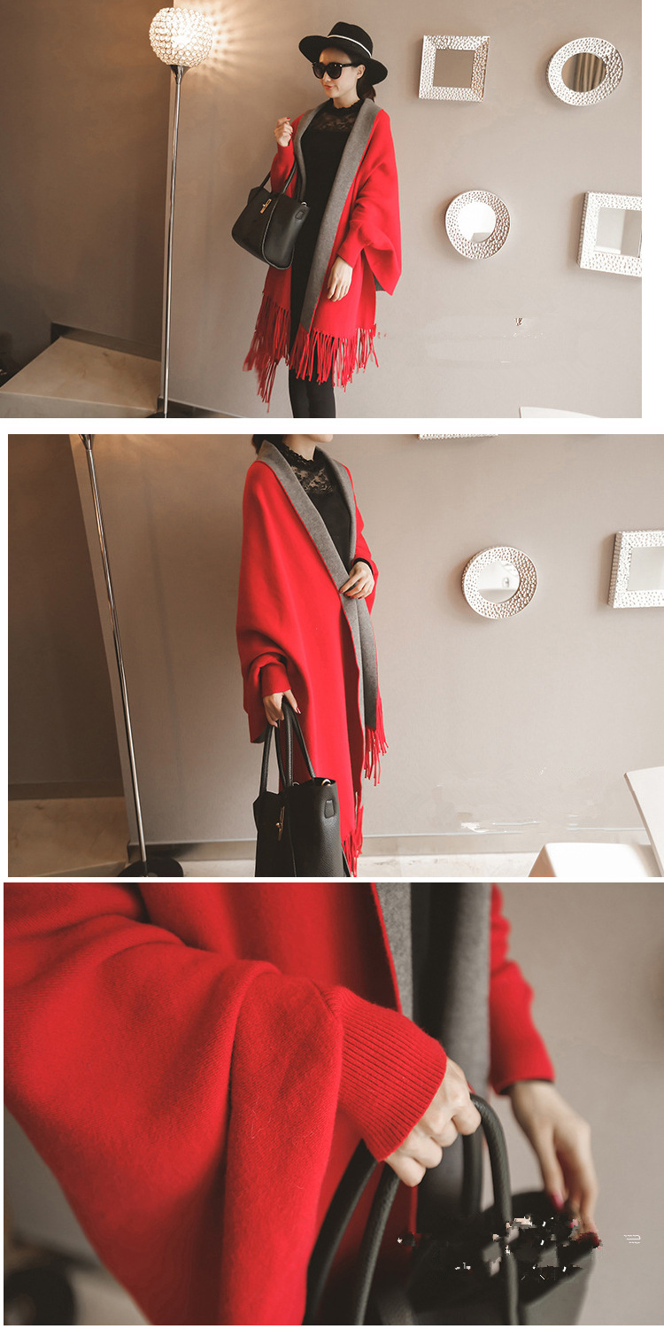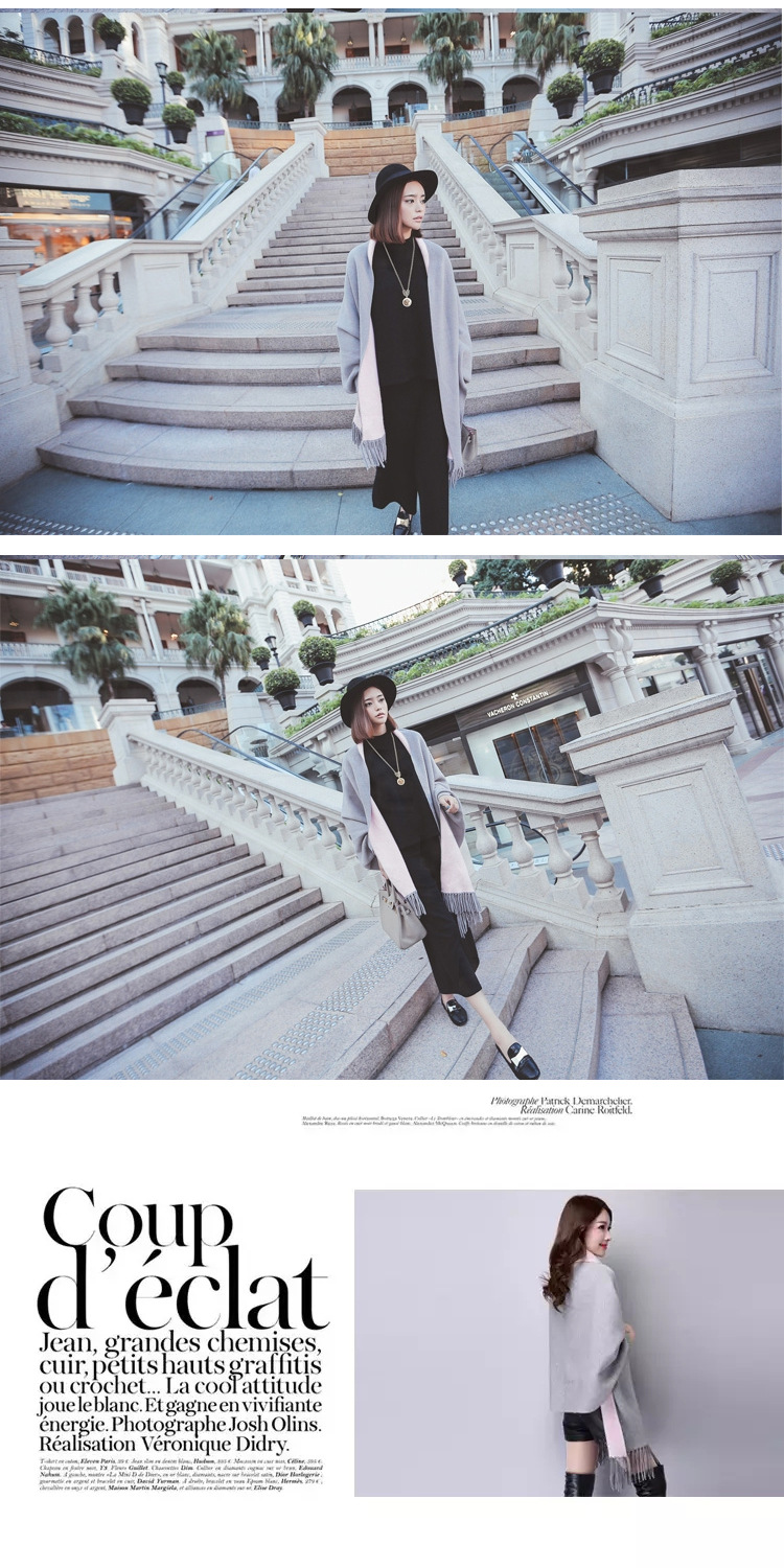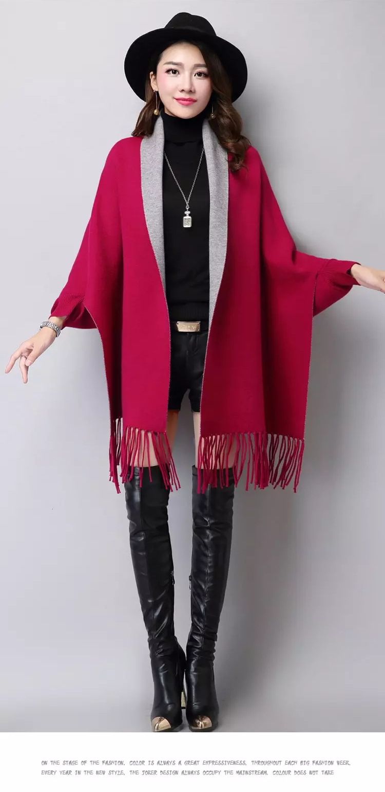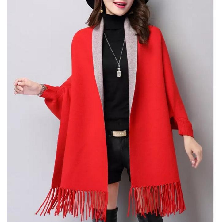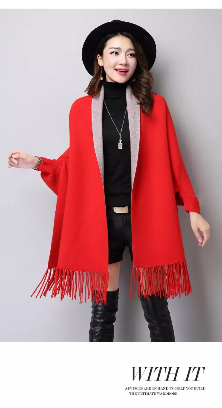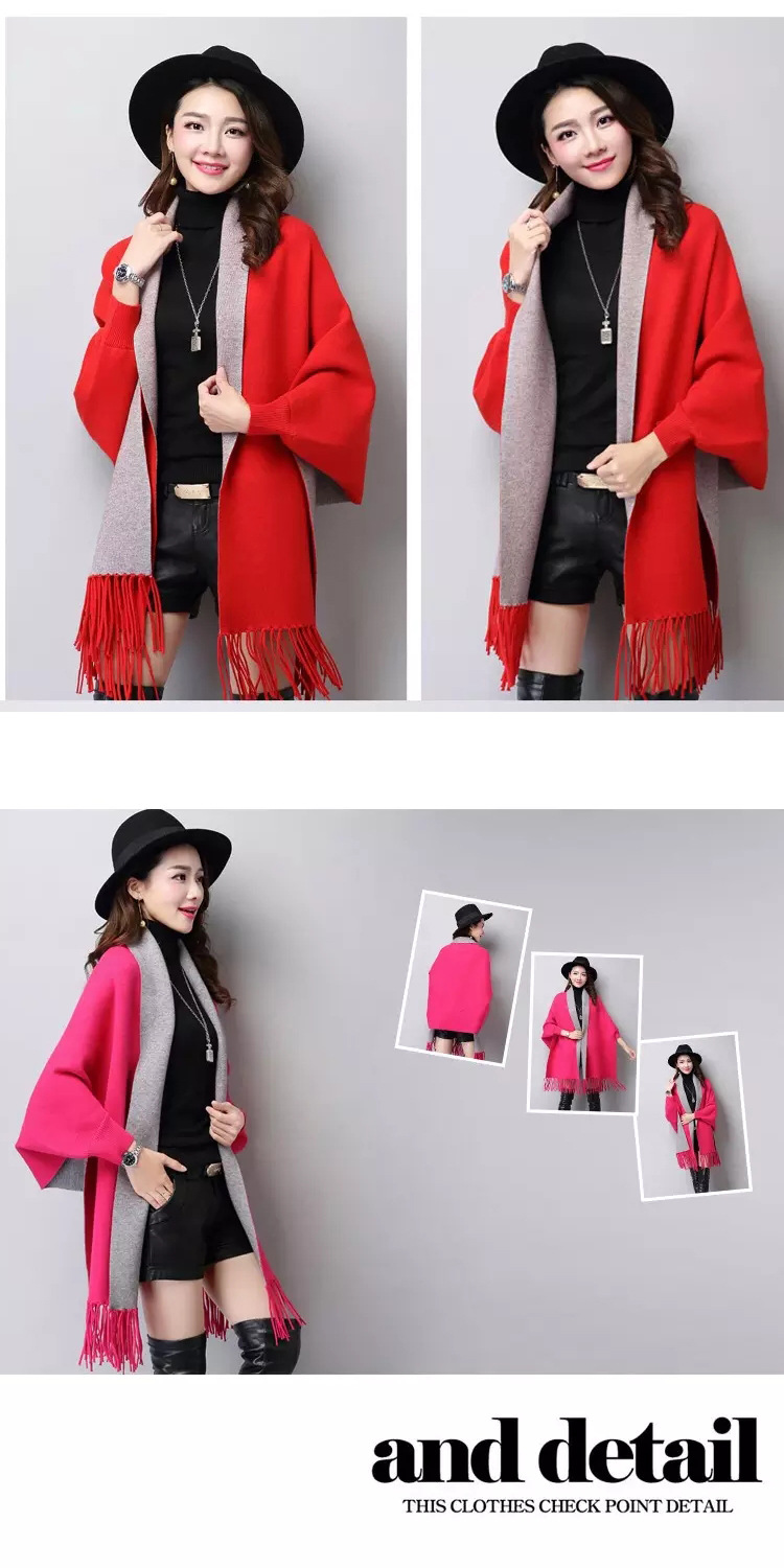 厂家直销带袖披风斗篷披肩围巾两用加厚秋冬季女双面纯色外套