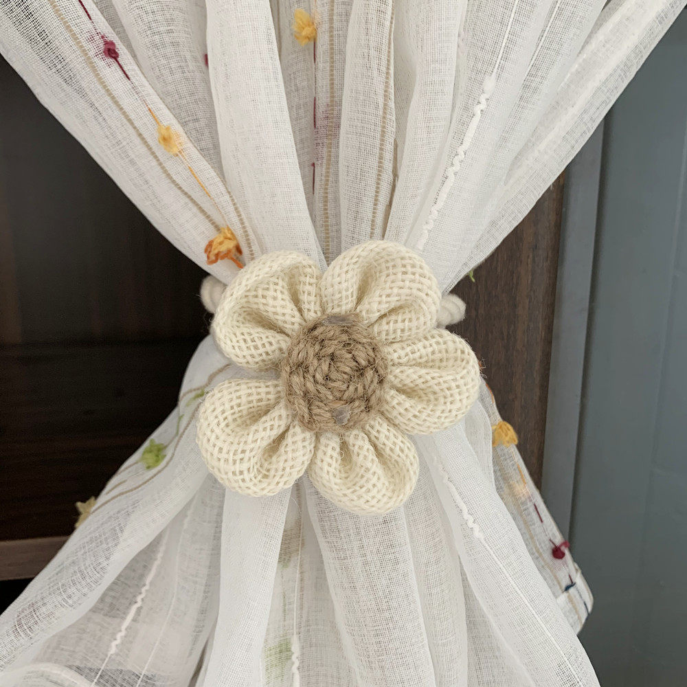 美式乡村麻绳绑带磁扣韩式绑绳磁铁窗帘扣挂钩免打孔安装花朵田园图1