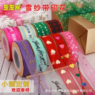 现货2.5cm烫金银纱带爱心透明细纱丝带 礼物鲜花包装绑带涤纶纱带RMB:5.60