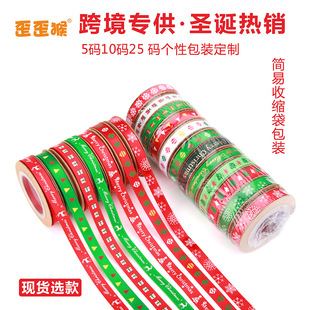 跨境10码5码25码蝴蝶结材料印花织带diy包装缎带彩带圣诞丝带RMB:5.50