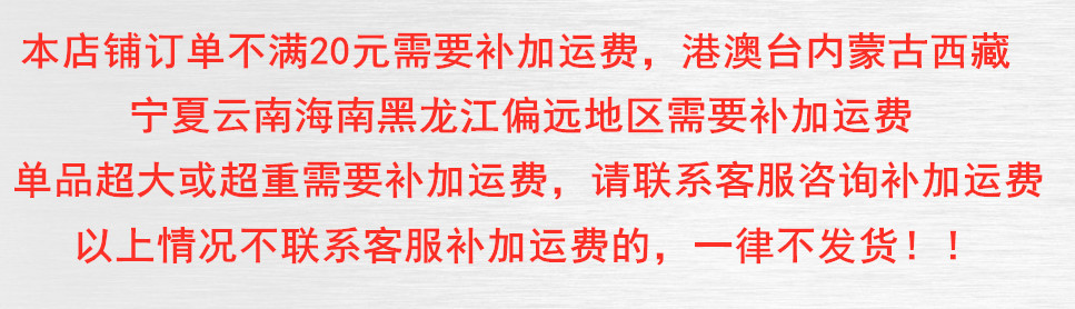本店支持一件代发 一般地区产品包邮 购买不满20 请咨询店内客服运费问题 店内所有产品全部赠送运费险,不满意7天无理由退款 不影响二次销售的情况下