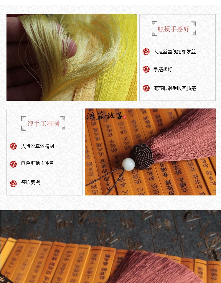 .高档顺滑人造丝菠萝帽流苏穗子diy中国结书签吊穗批发图1