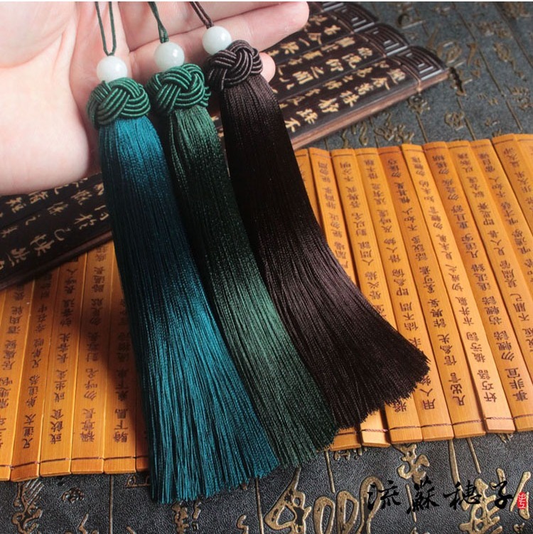 .高档顺滑人造丝菠萝帽流苏穗子diy中国结书签吊穗批发