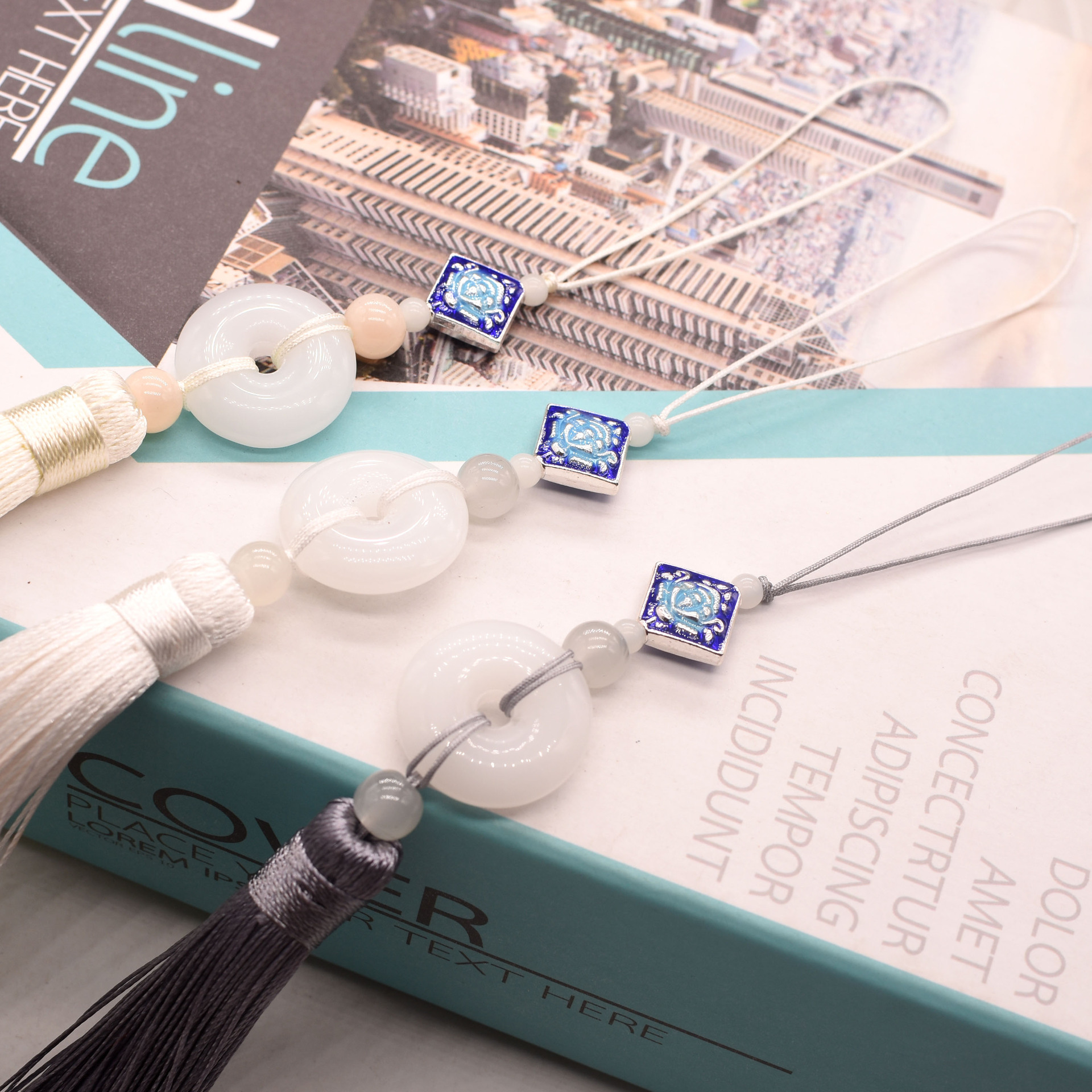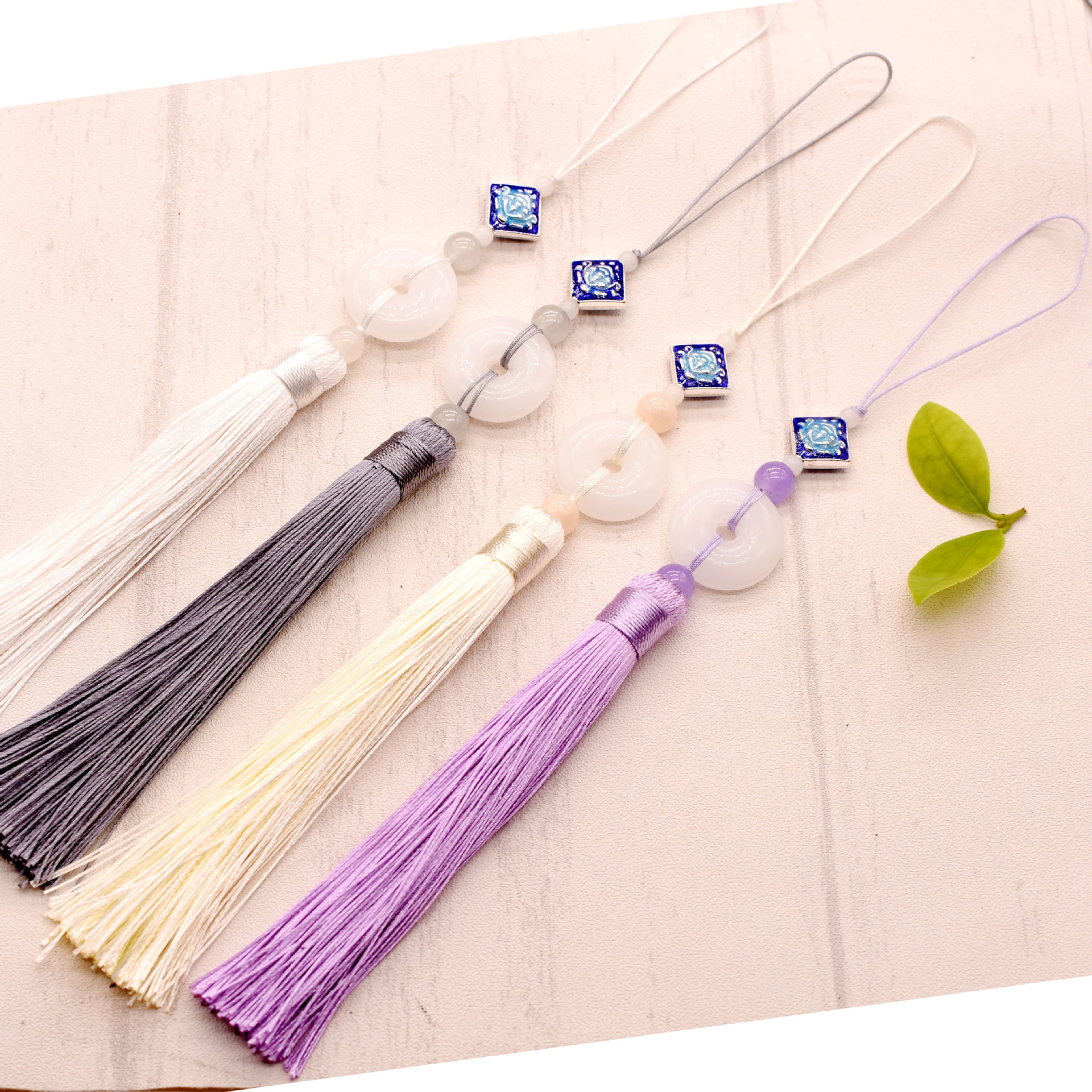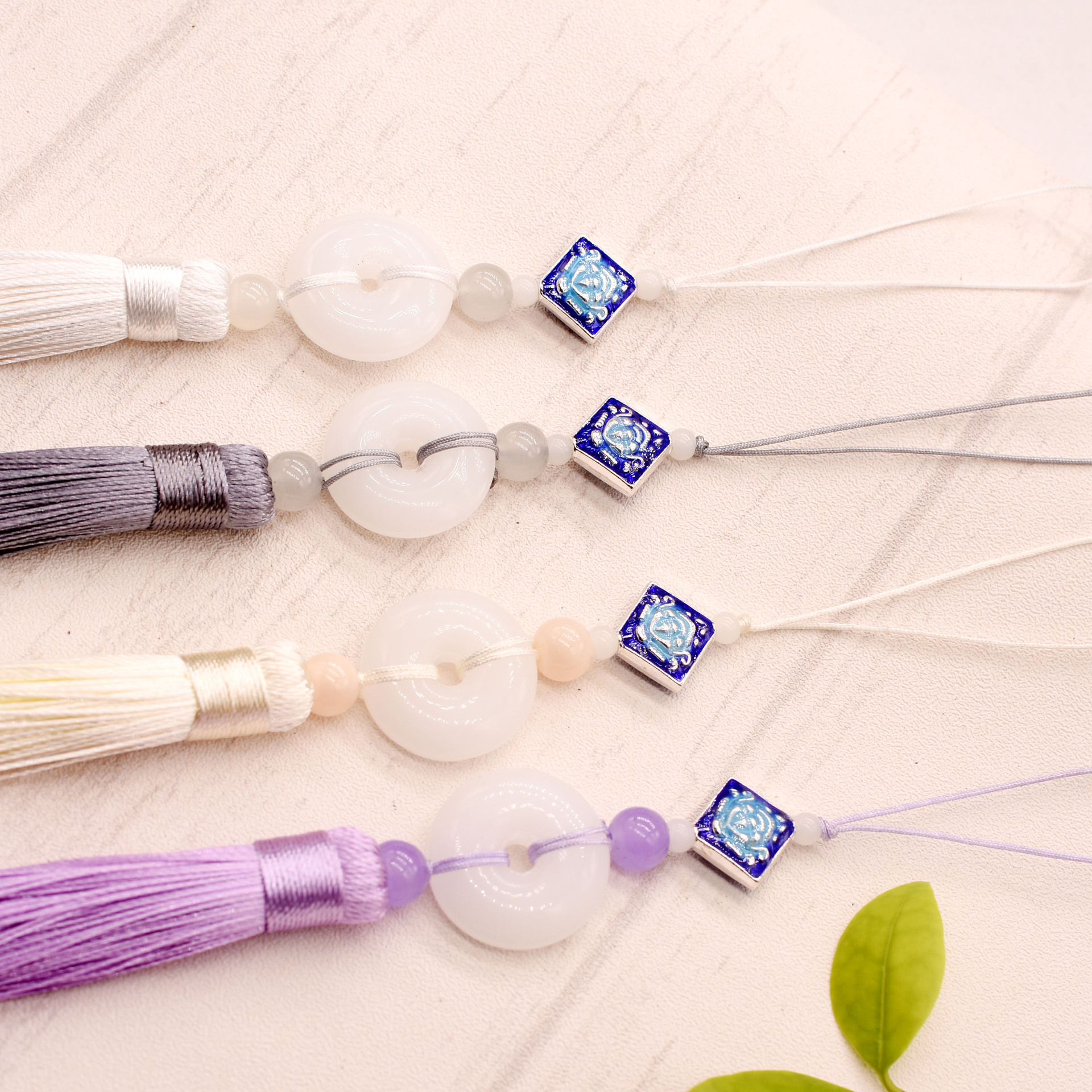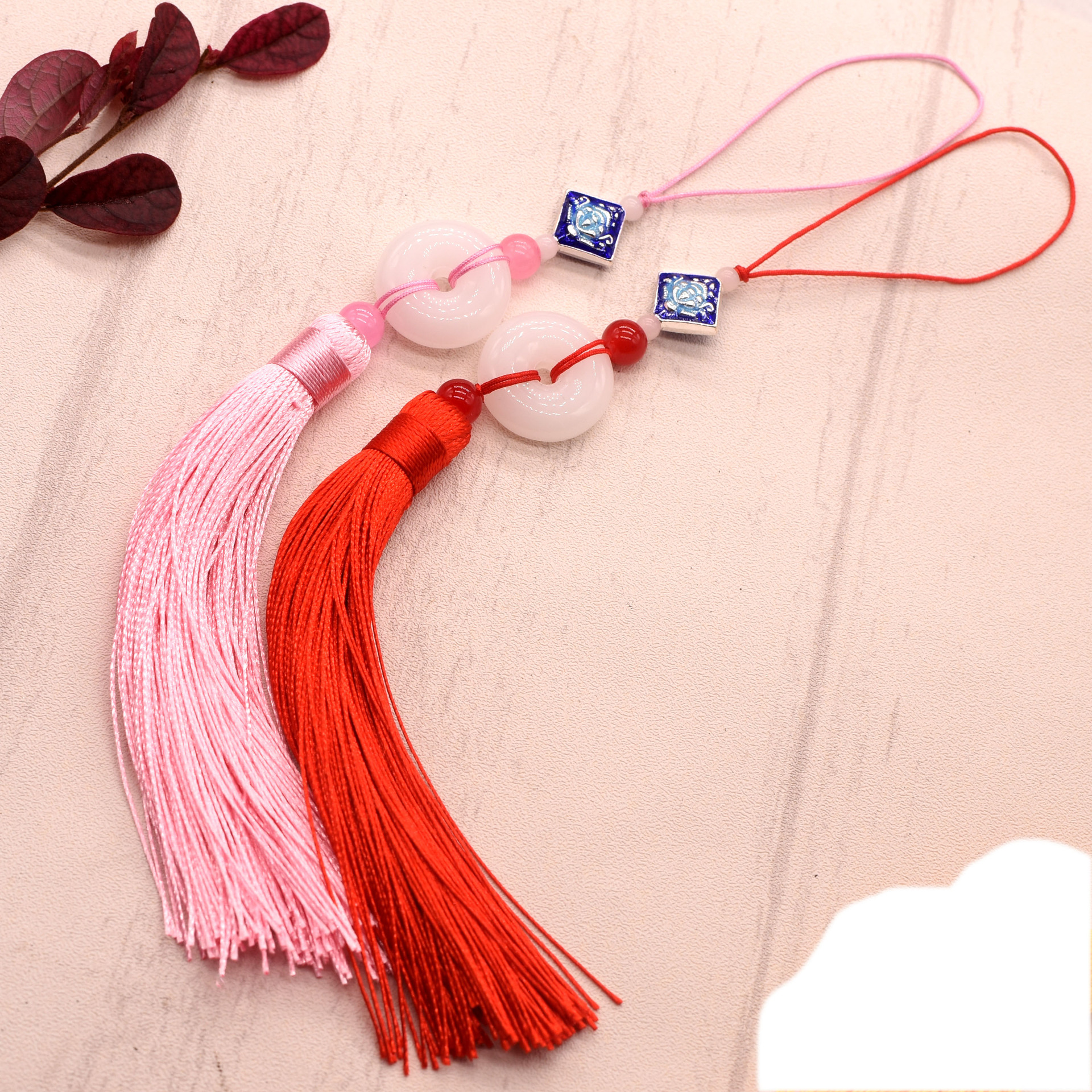 .白玉平安扣工艺品流苏挂件旗袍压襟流苏穗子景泰蓝流苏挂件