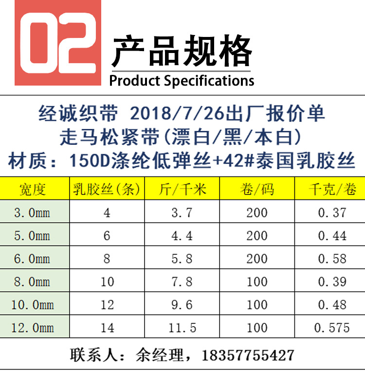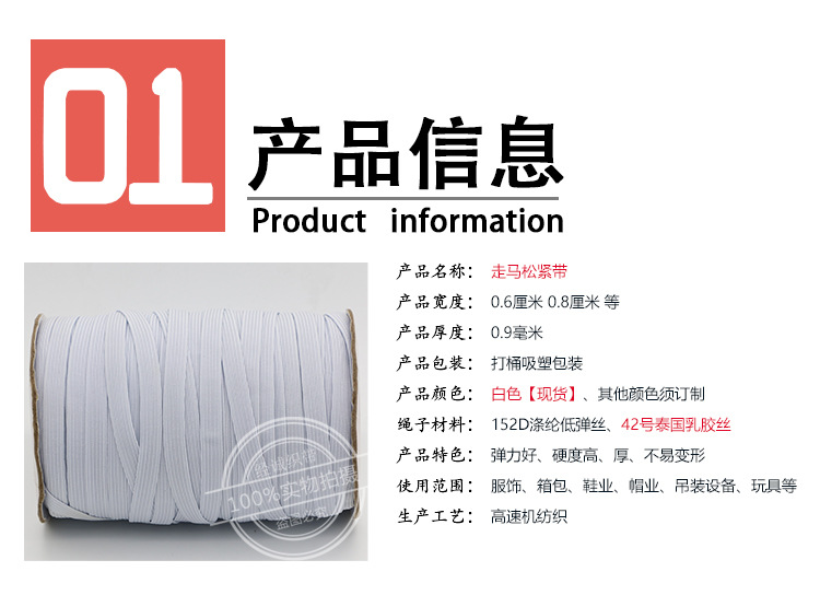 .泰国乳胶丝走马松紧带 白色跑马弹力带 扁平细窄边袖套伸缩带