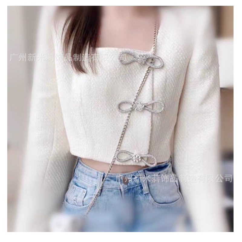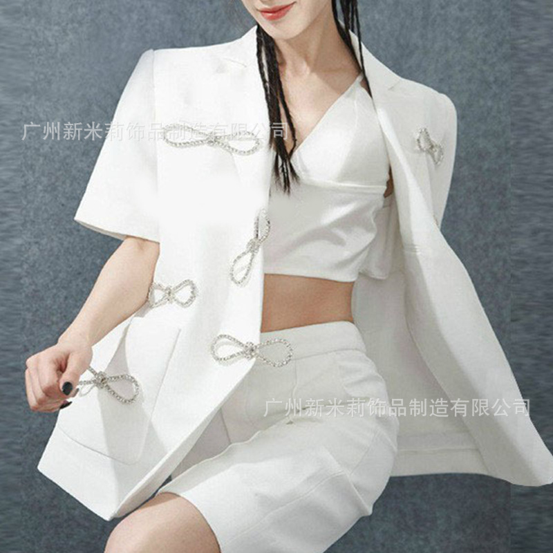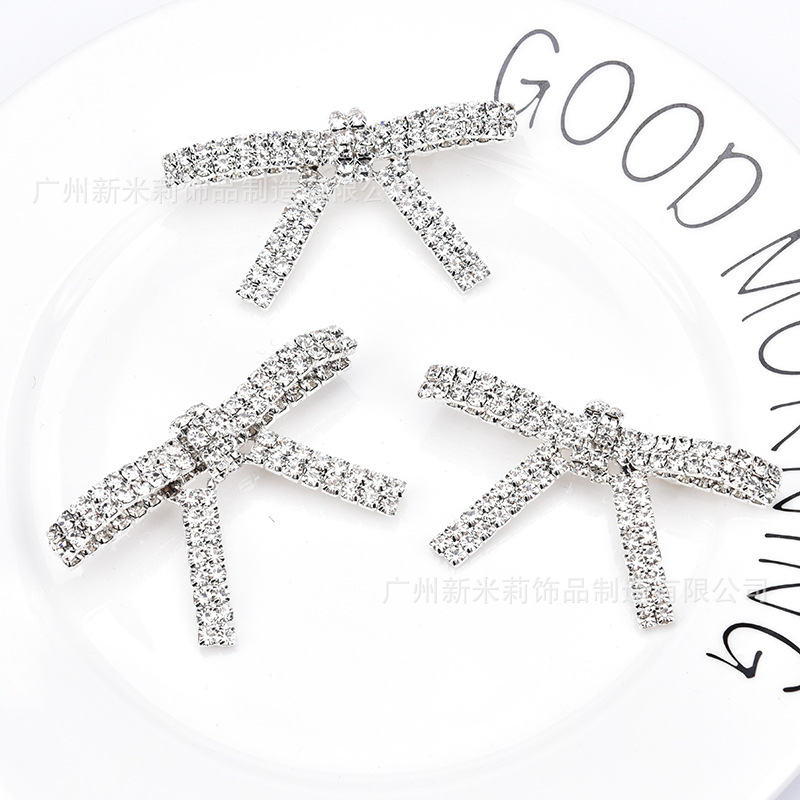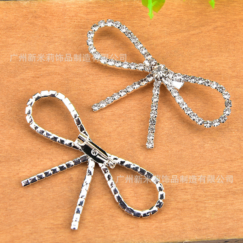 .工厂新品 水钻蝴蝶结胸针西装礼服水晶别针 双排爪链针扣配件批
