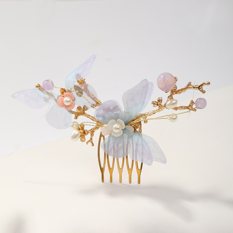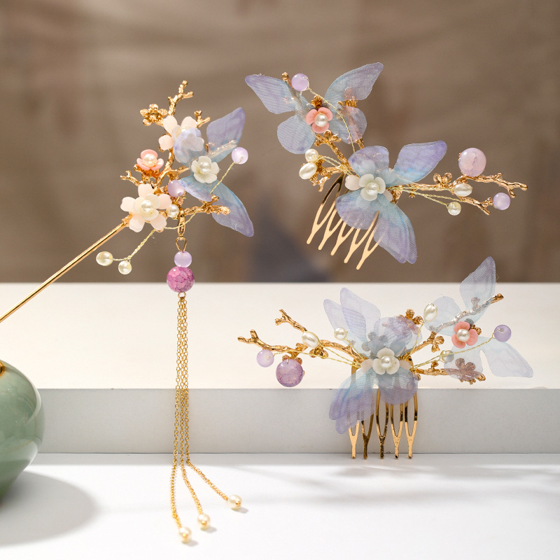 蝴蝶发簪流苏发梳汉服头饰古典明制步摇古装饰品全套古风发饰套装图1