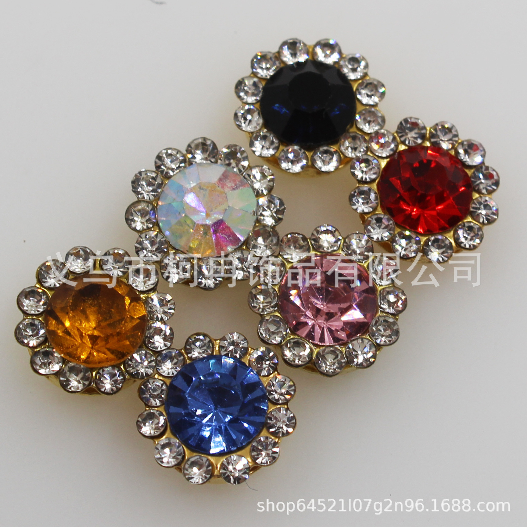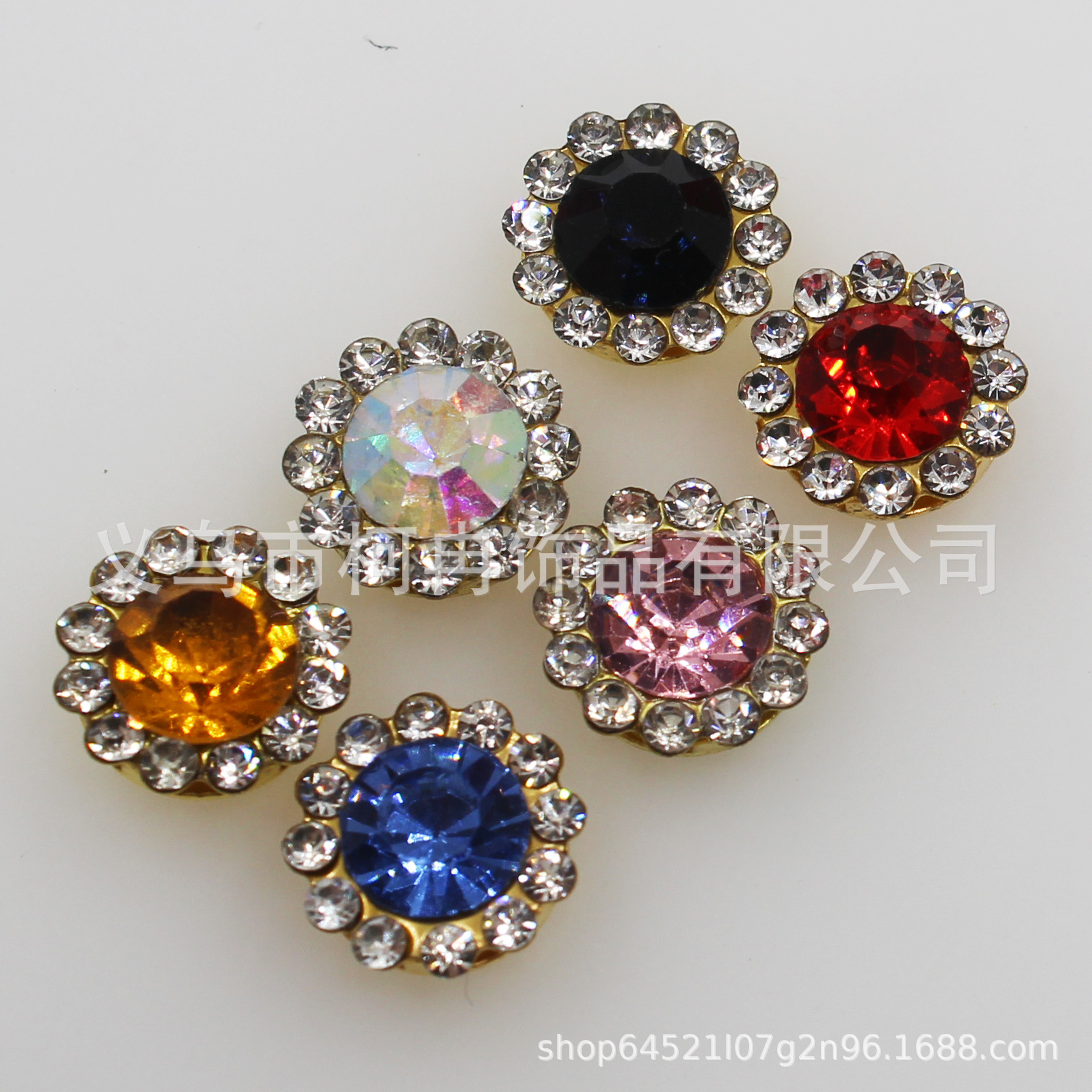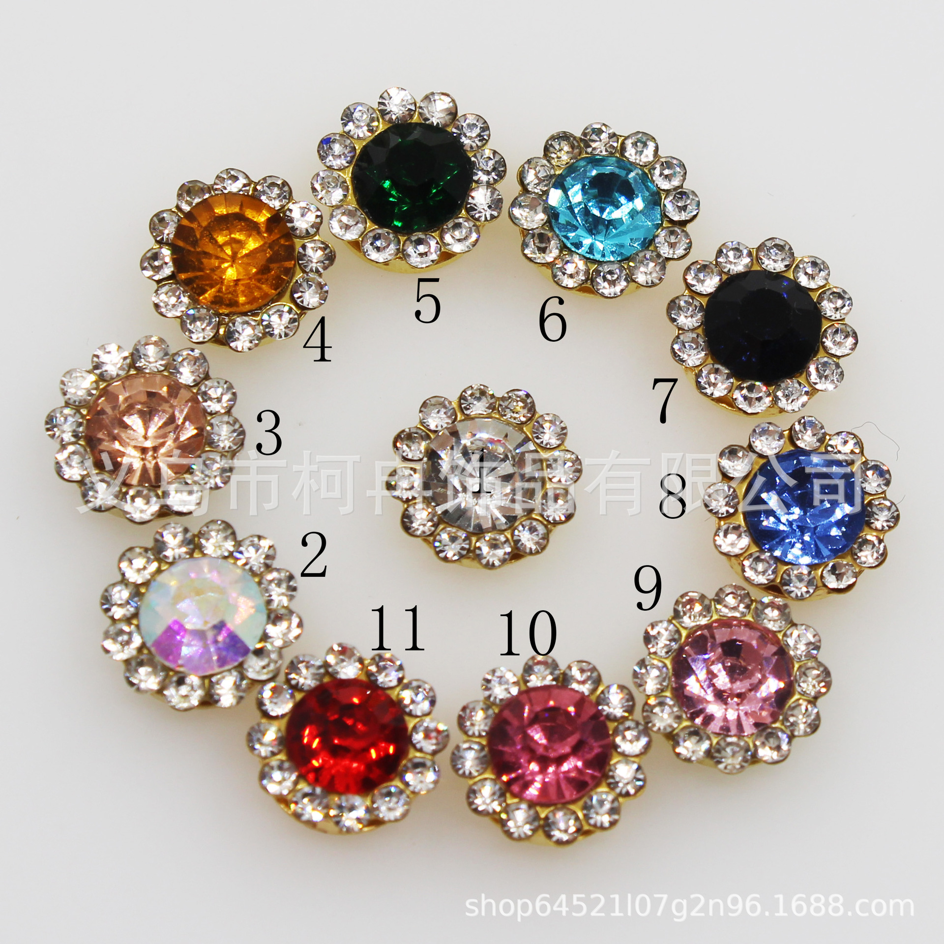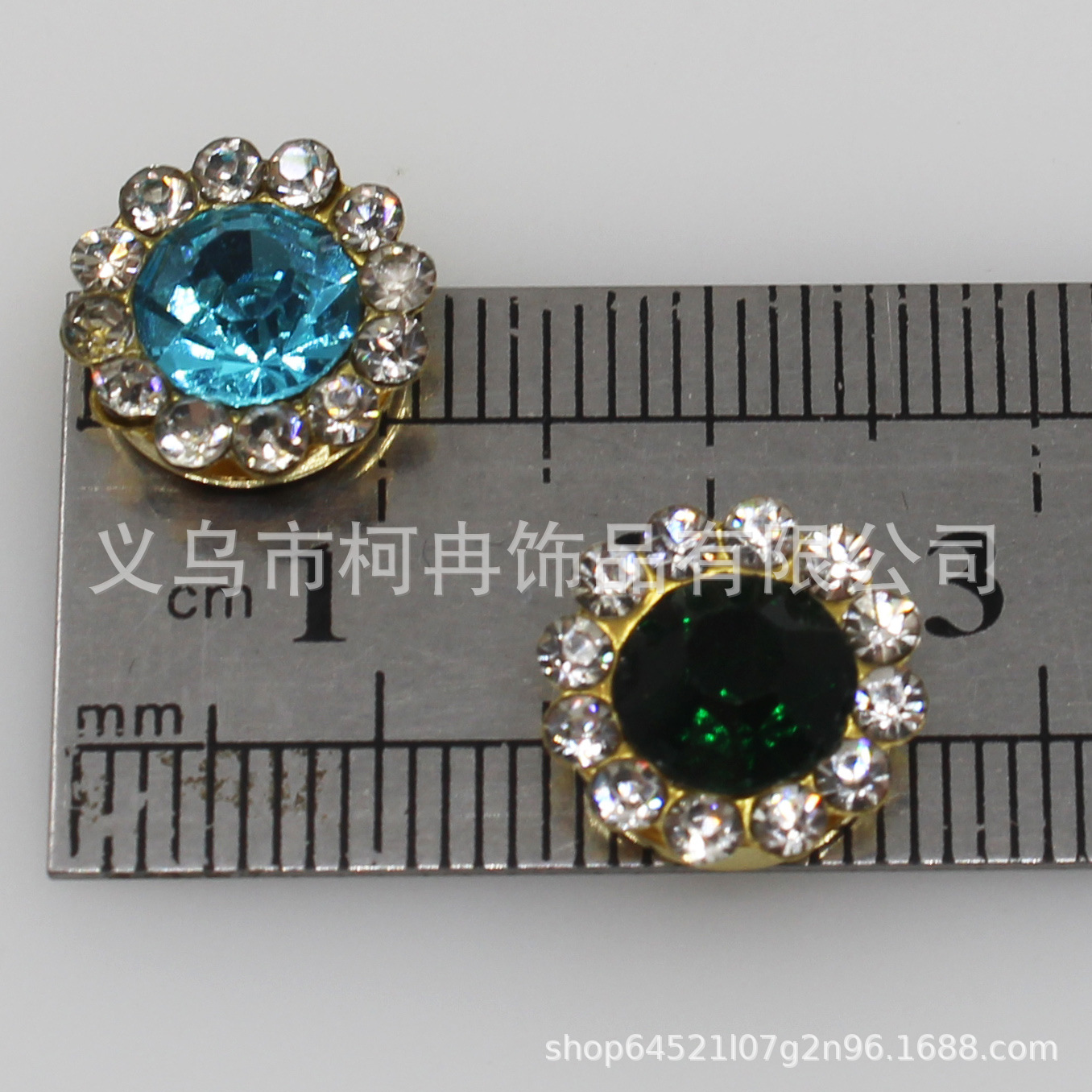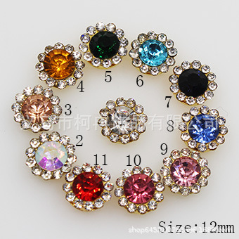 12mm平底圆形金色水钻花盘 钻扣 爪链 DIY发饰 服装纽扣 饰品配件图1