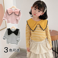 2021装新款女童长袖T恤 女宝宝条纹蝴蝶结翻领打底衫儿童上衣 | |