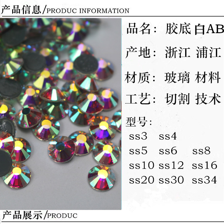 现货白AB幻彩玻璃平底钻热烫底diy服装辅料美甲饰品贴钻舞服烫钻