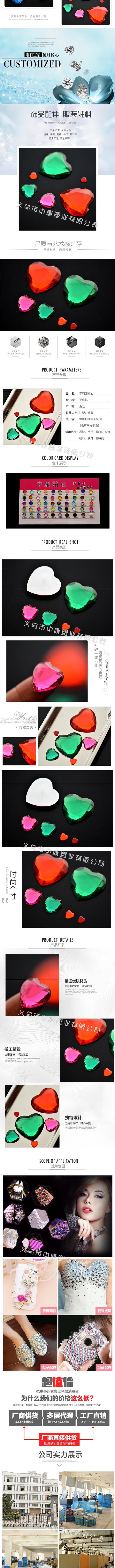 批发 亚克力钻平底平切面桃心 配件 diy饰品配件 服装辅料美甲钻图1