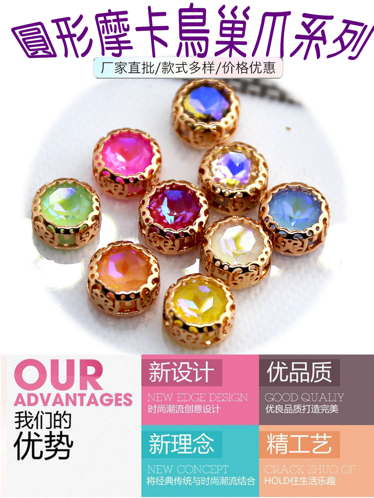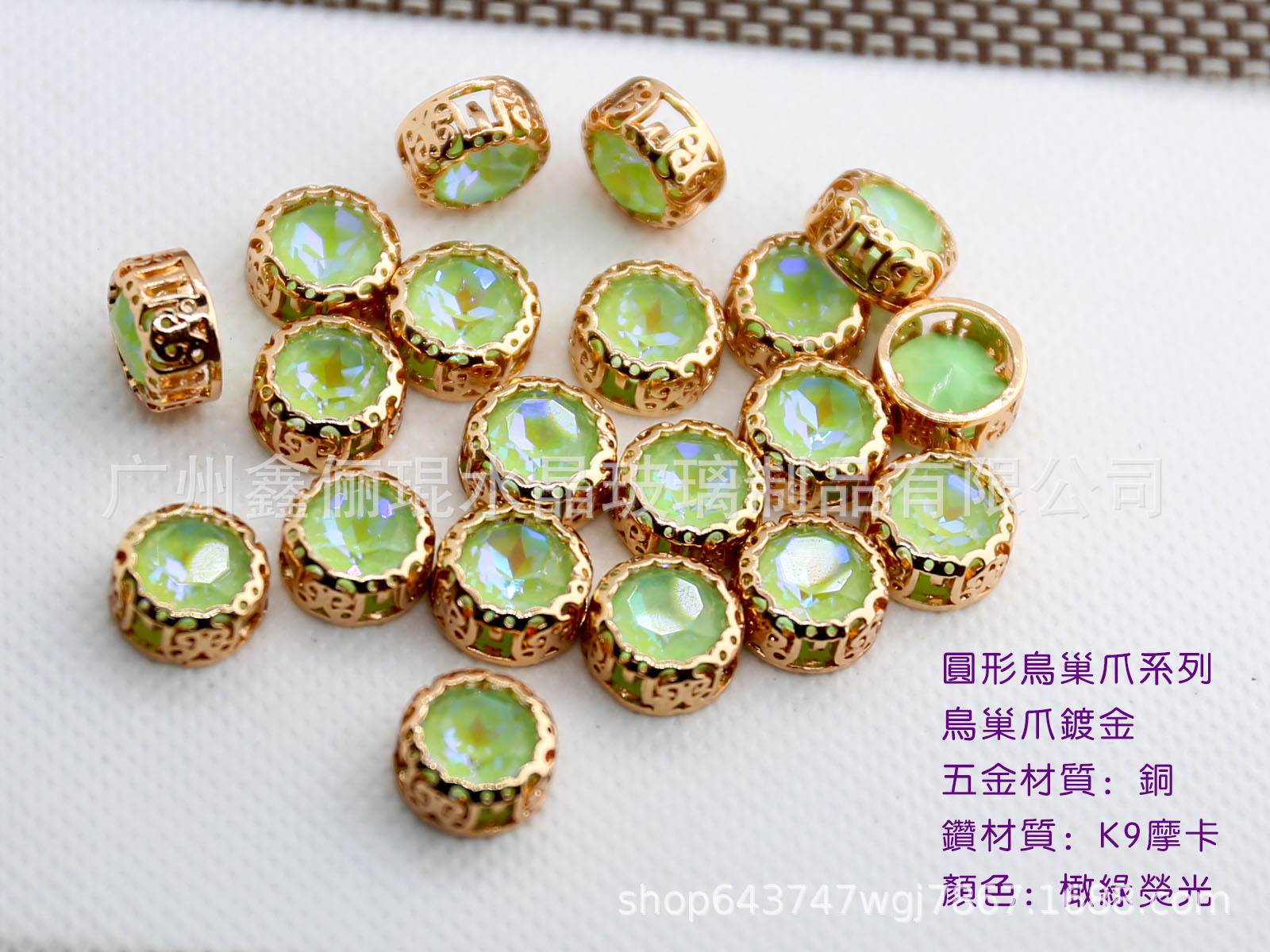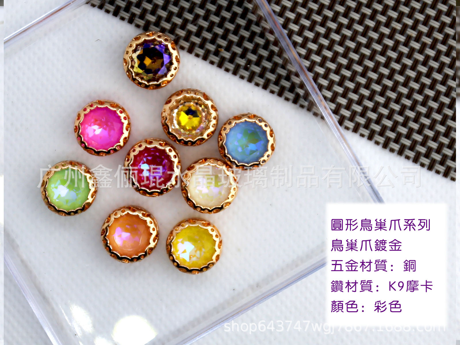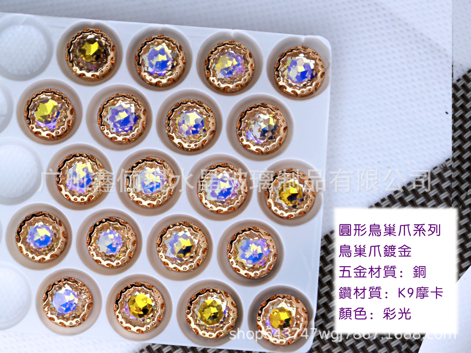 圆形鸟巢手缝钻K9摩卡荧光玻璃钻服装鞋子婚纱装饰扣diy饰品配件