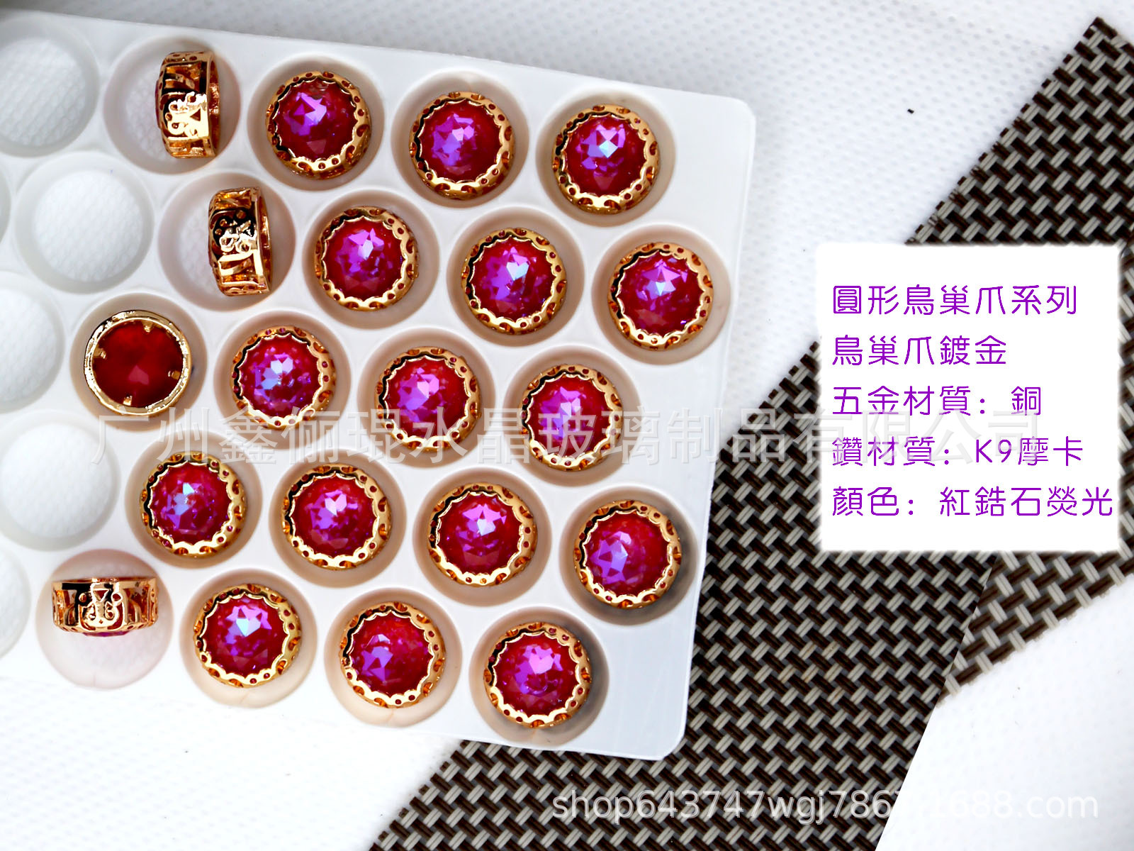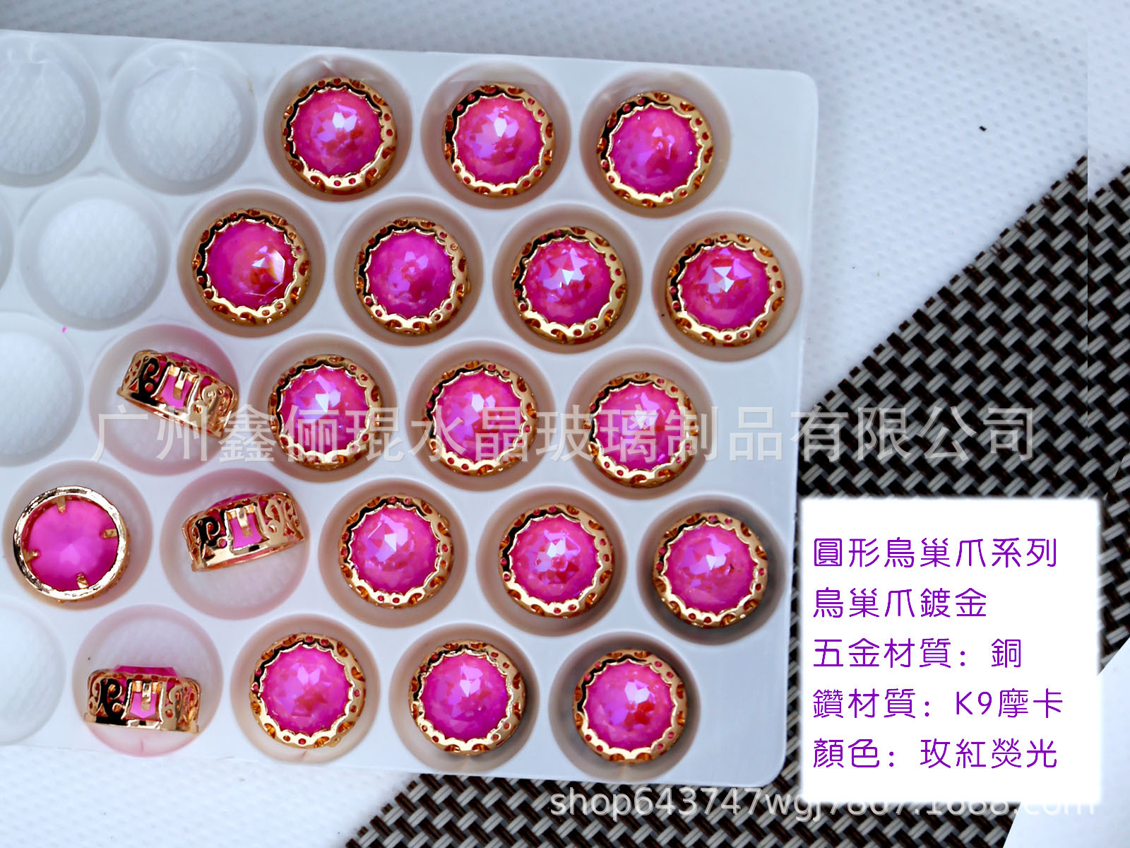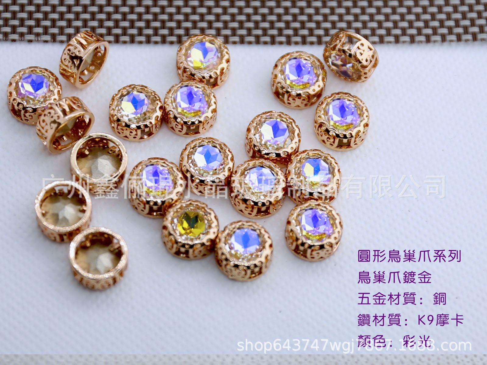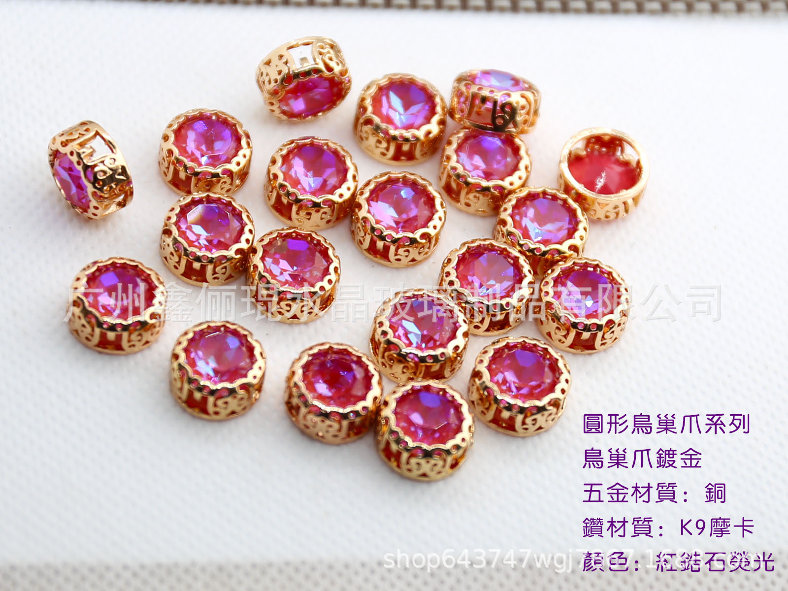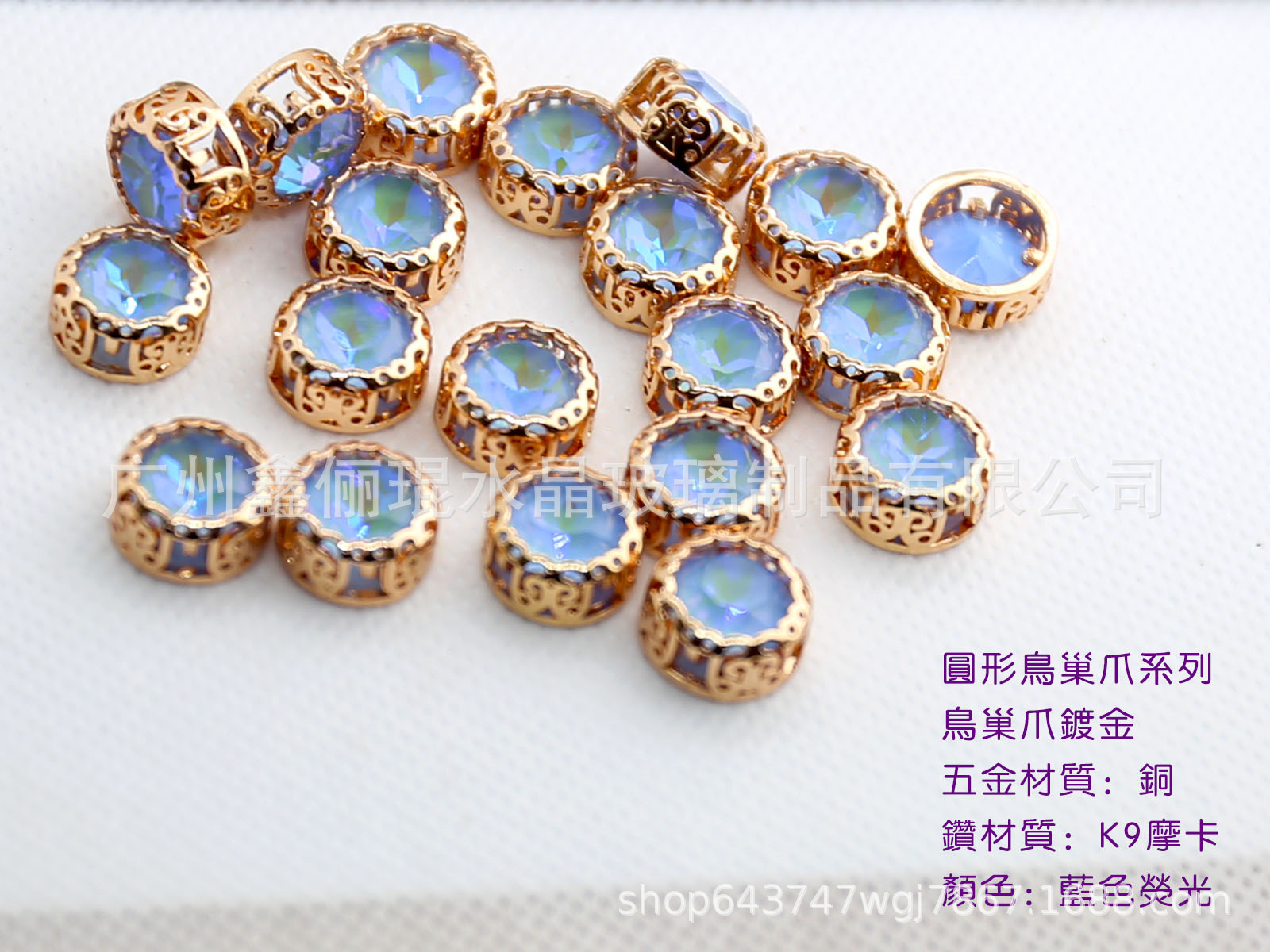 圆形鸟巢手缝钻K9摩卡荧光玻璃钻服装鞋子婚纱装饰扣diy饰品配件