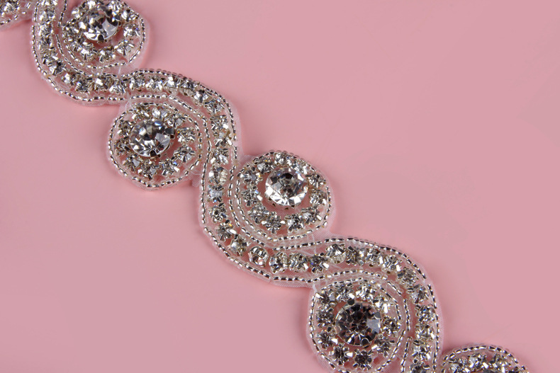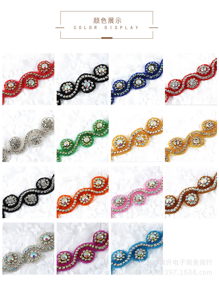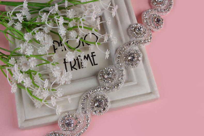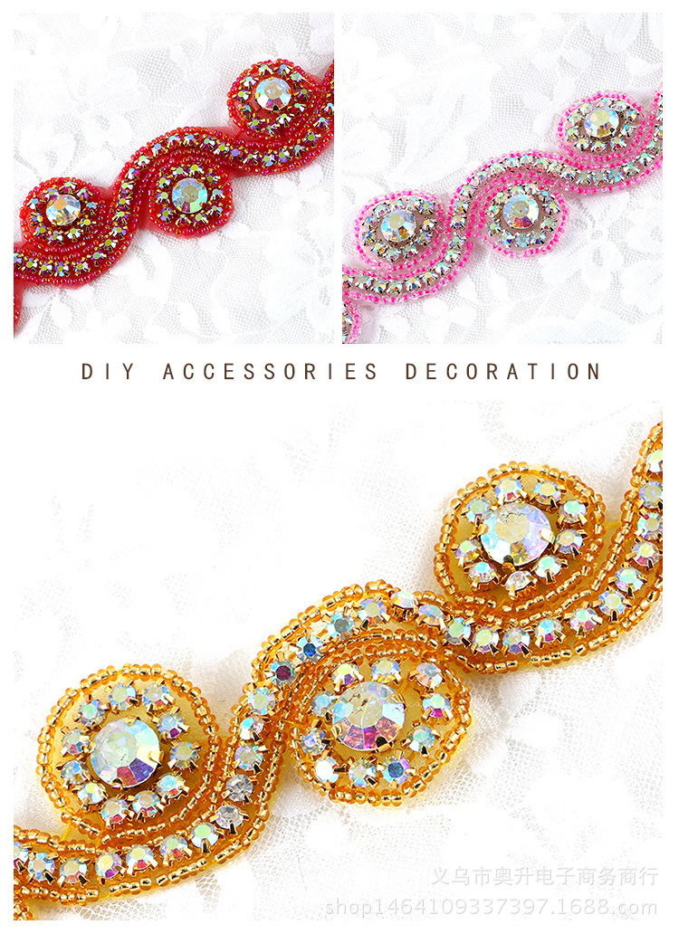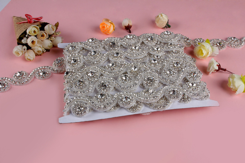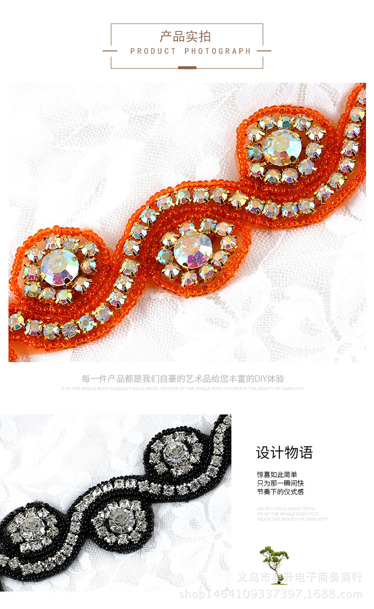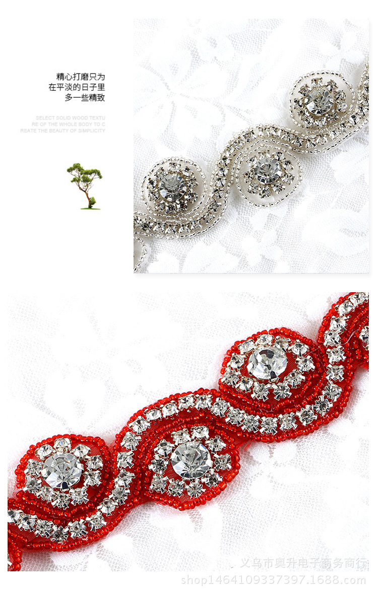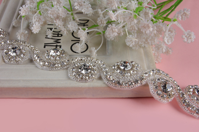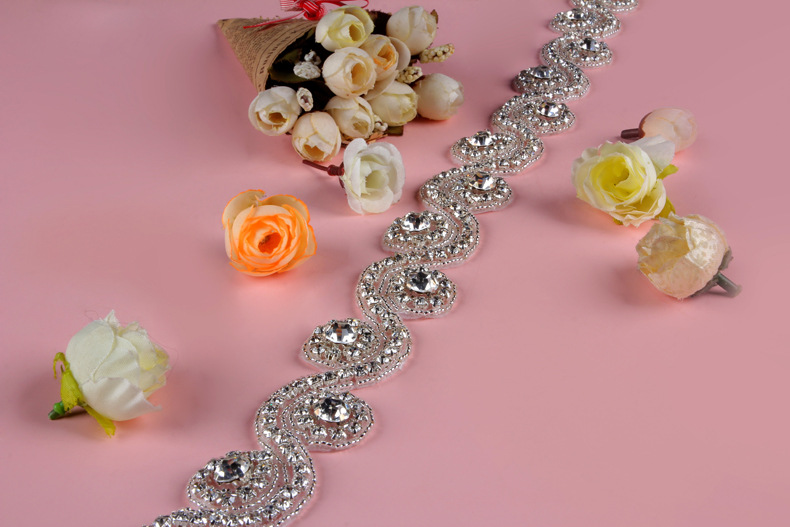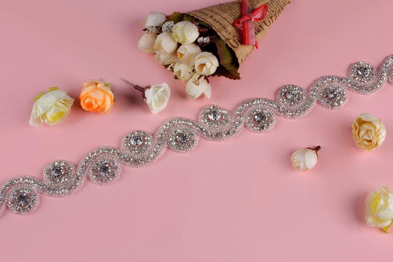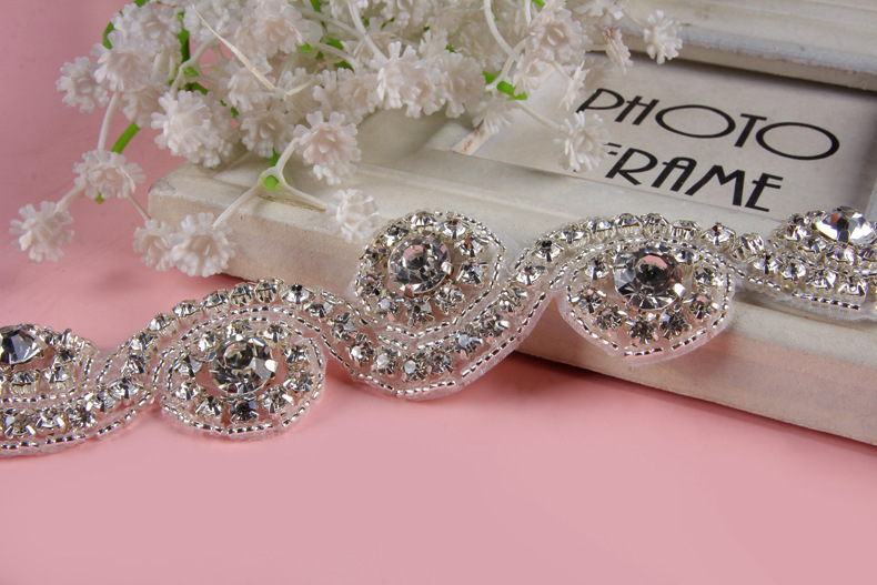 供应diy水钻贴花腰带配件 婚纱礼服玻璃钻纱花朵服饰装饰配饰批发